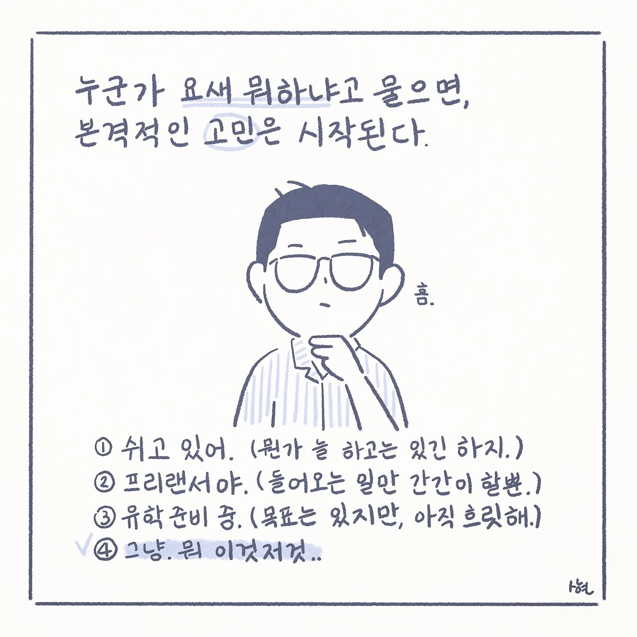 매순간 산책하듯. '산책주의자'의 삶을 추구하며, 산책 중에 떠오르는 수 많은 생각들을 글과 그림으로 정리하고자 합니다.