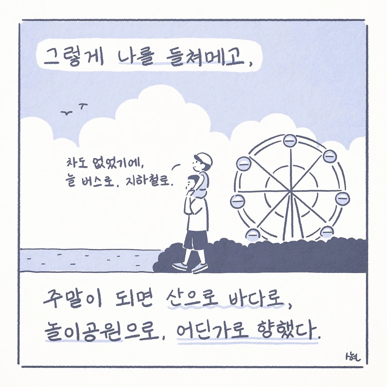 매순간 산책하듯. '산책주의자'의 삶을 추구하며, 산책 중에 떠오르는 수 많은 생각들을 글과 그림으로 정리하고자 합니다.