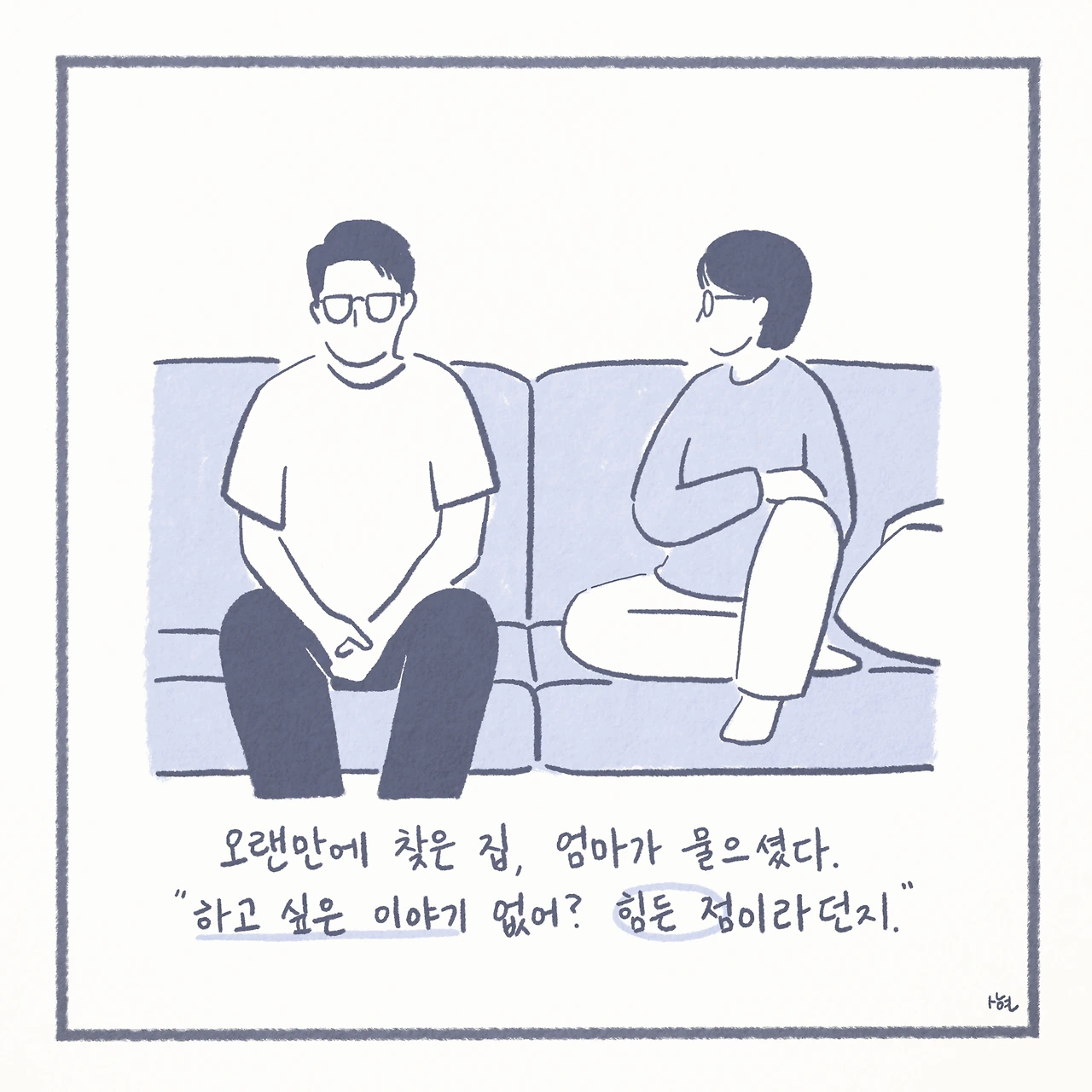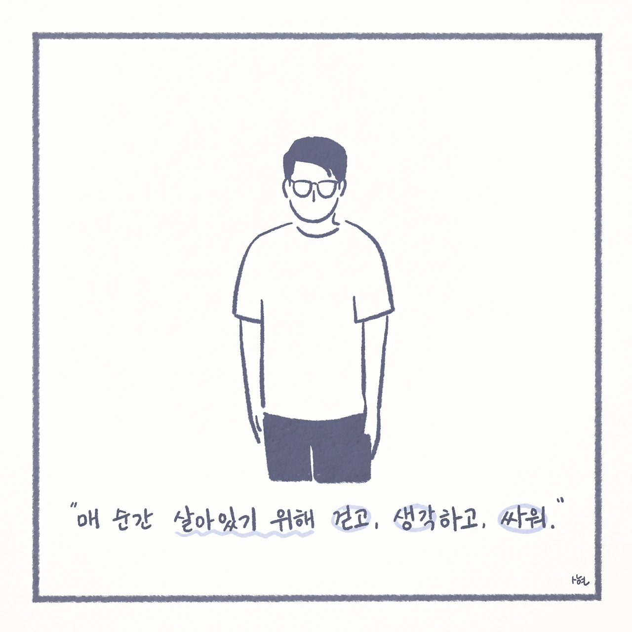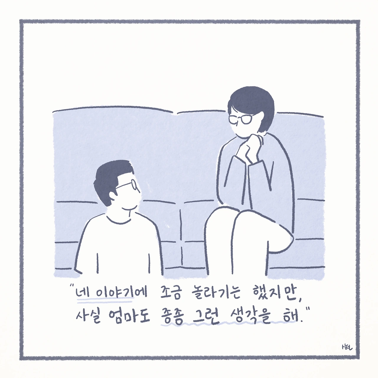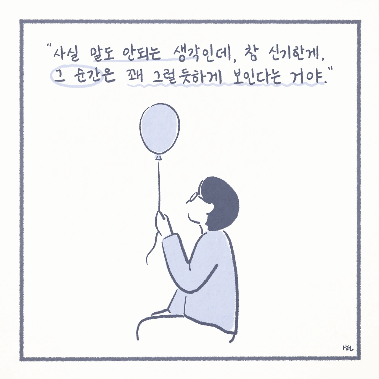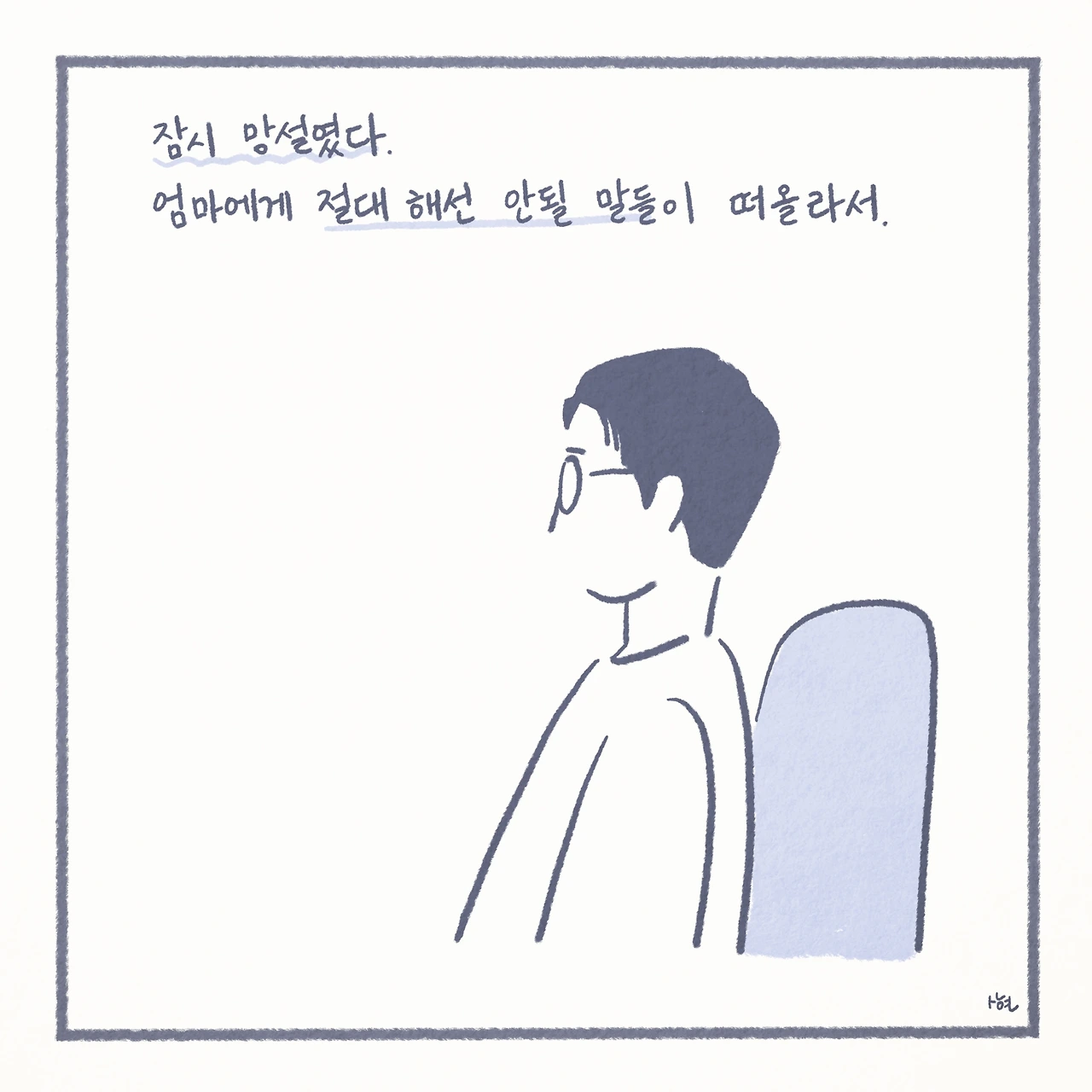 최근에서야 미디어에서 ‘자살 유가족’이라는 말을 접하면서, 남겨진 가족들이 평범하게 살아가는 것이 생각보다 그리 당연한 일은 아니라는 것을 깨닫게 되었다. 신기하게도 ‘자살 유가족’이라는 단어 하나만으로, 내 스스로 자책하며 살아왔던 그 간의 모든 것들을 타당한 것처럼 느끼게 만들었고, 생각 이상으로 어마어마한 위로를 받았다. 또한 이는 모두가 살아가며 지닌 보편적인 수 많은 고통 중에 하나일 뿐이었고, 나는 절대로 잘못된 것이 아니었다.