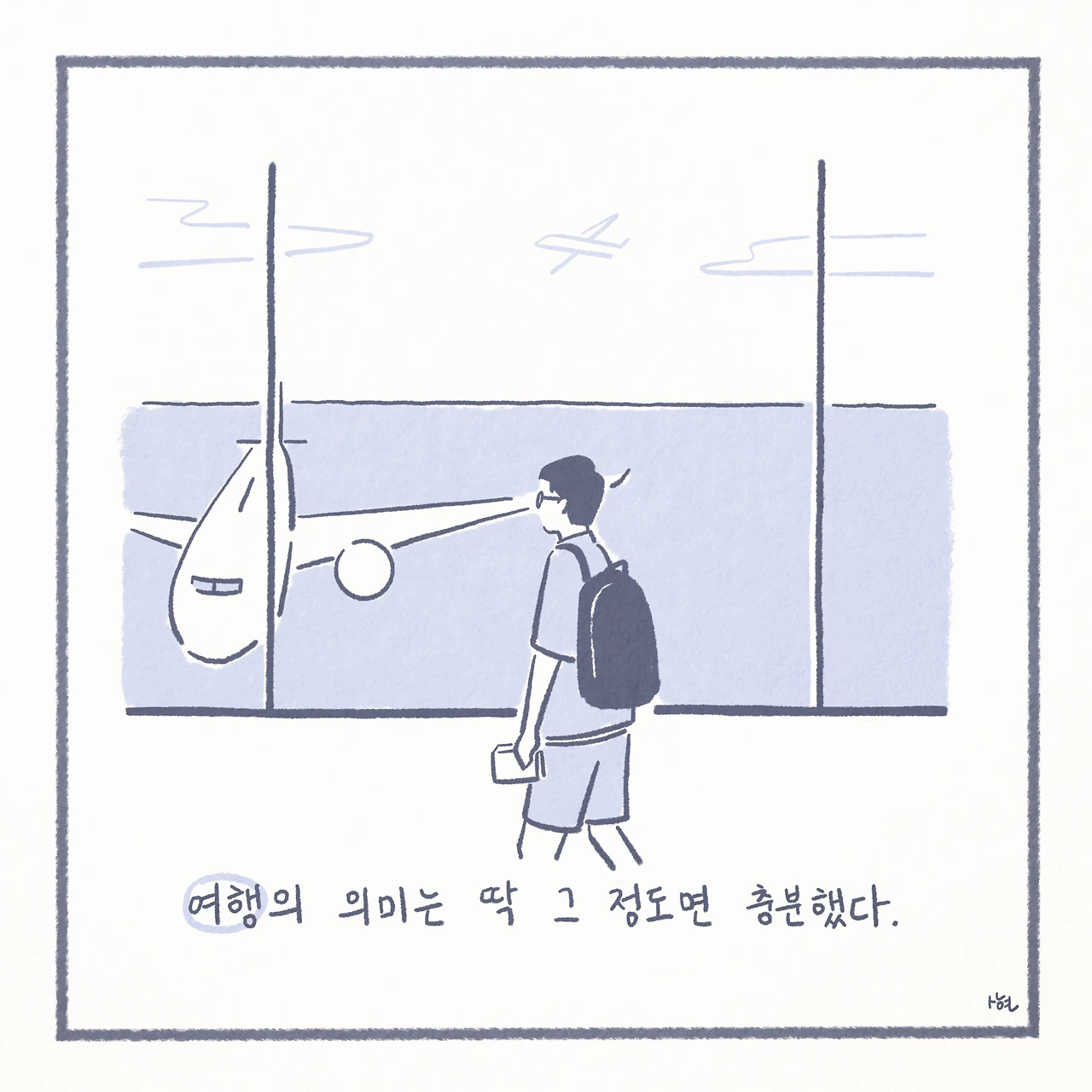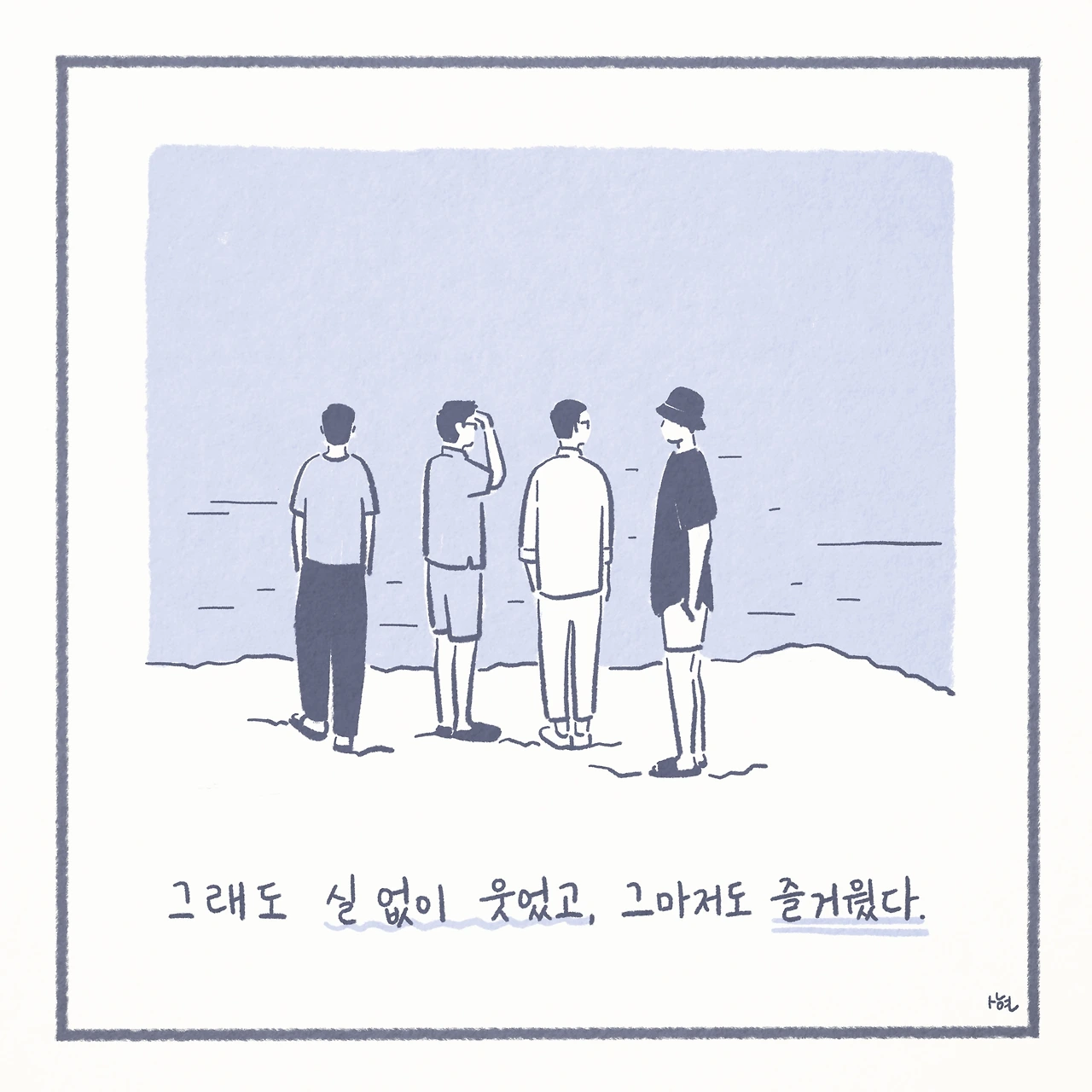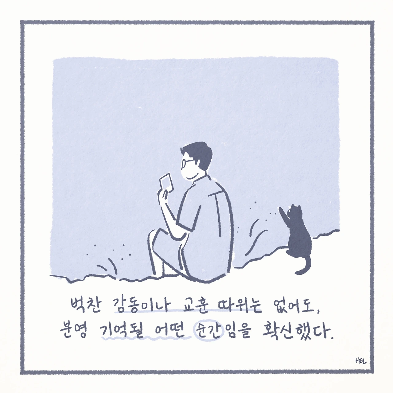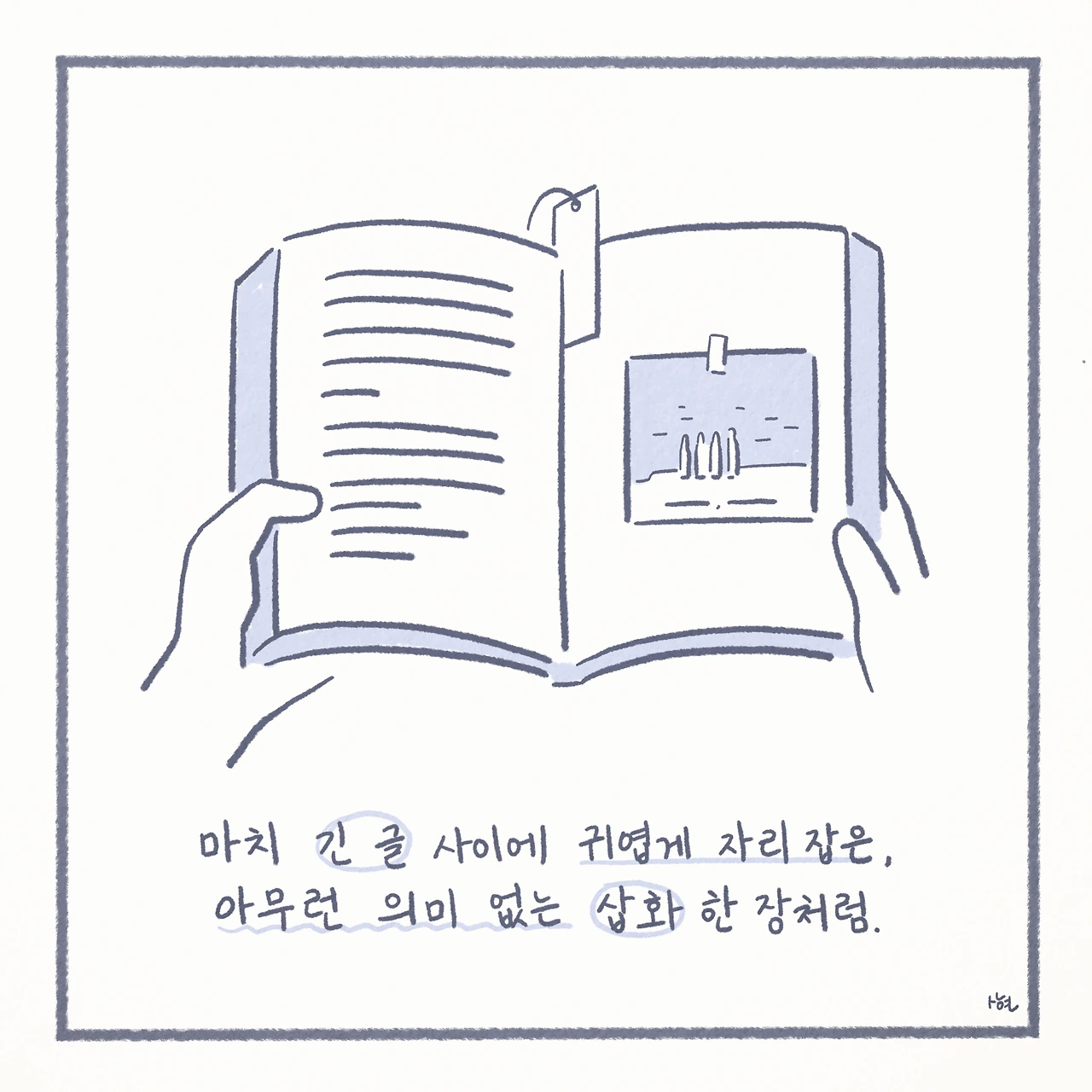 마치 긴 글 사이에 귀엽게 자리 잡은, 아무런 의미 없는 삽화 한 장처럼.