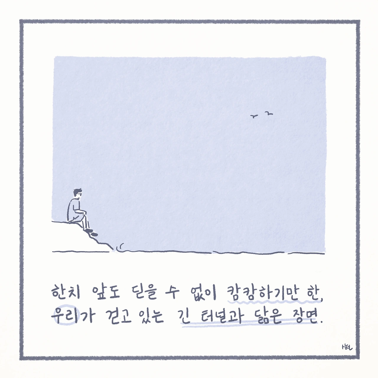 한치 앞도 딛을 수 없이 캄캄하기만 한, 우리가 걷고 있는 긴 터널과 닮은 장면.