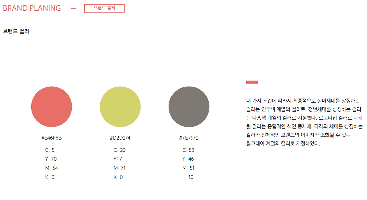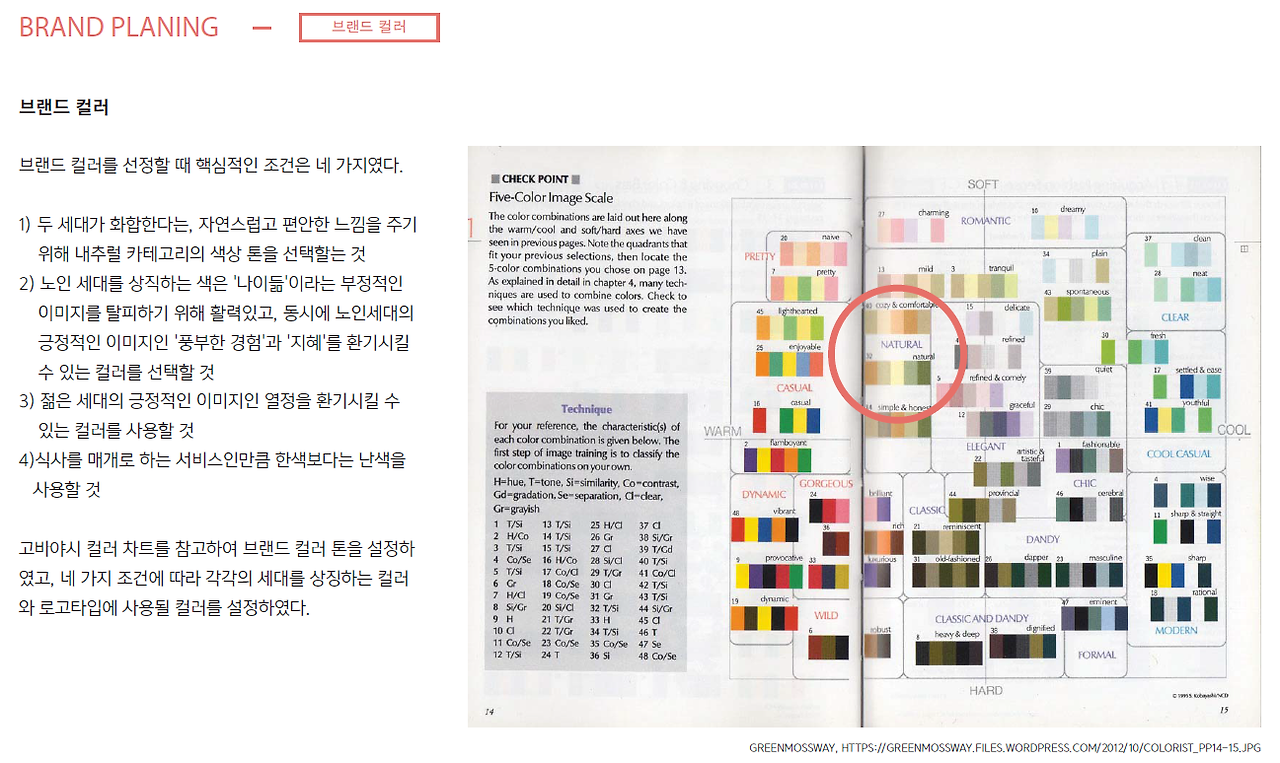 그림 1. 연세대 생활디자인학과 2016 통합디자인스튜디오 곽민지/김가영/윤희우/이강경 팀 브랜드 컨셉 및 색채