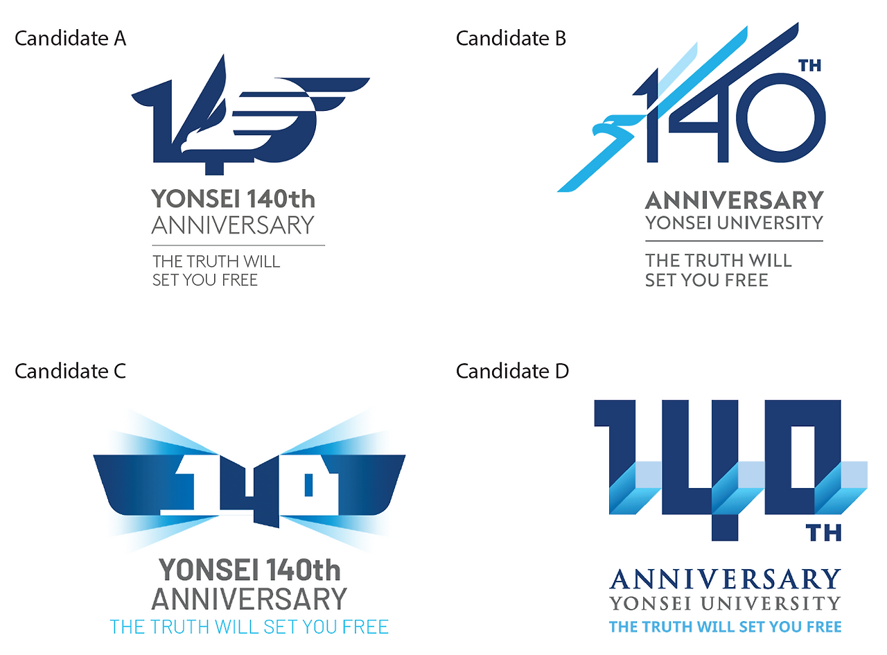 필자가 학교에서 작은 보직을 하며 관여했던 작업이 하나 있는데 바로 개교 140주년을 기념하는 엠블럼이다. 시각디자인 전공자가 아니면서 다양한 구성원들의 여러 요구 조건을 만족시키는 결과를 도출해야 하는, 나름 심적으로 상당히 부담가는 작업이었다. 평판과 경력을 바탕으로 선정된 업체(tangiblebd.com)는 짧은 작업 시간과 많지 않은 예산을 극복하고 다음 네 가지 안을 전달해 주었다. 어떠한 사전 설명 없이, 최종 선정작을 모른 채 아래 후보들을 음미해보고 가장 좋아하는 안을 골라보자. 왜 그 안을 골랐는지도 자문해보시길.