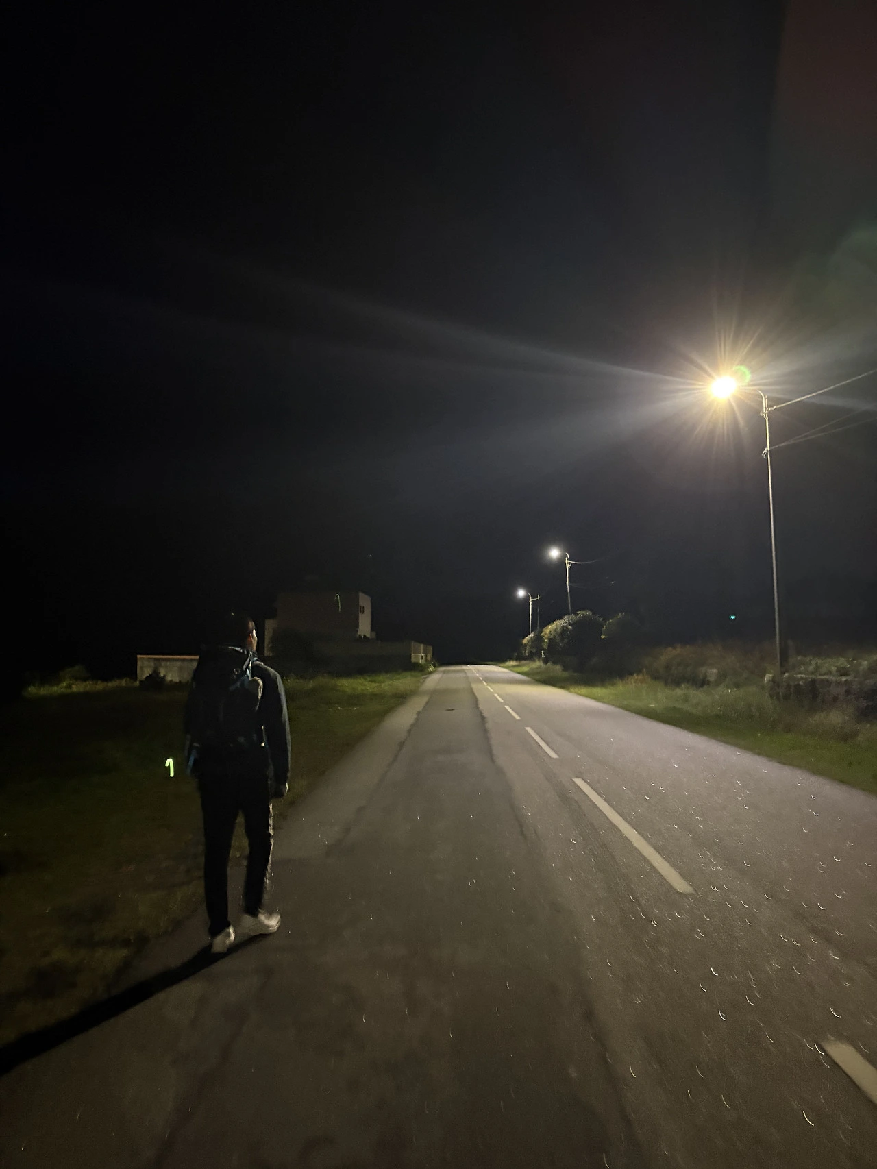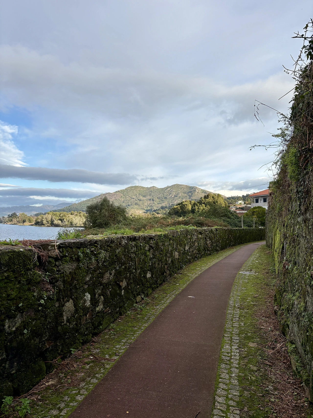 정확히 얼만지 이제는 흐릿한데, 20유로 정도 했던 것 같다. 이렇게 발목이 아픈데, 나 자신을 위한 2025년 크리스마스 선물로 3만 원 좀 넘는 스틱 한 자루는 사줄 수 있다고 생각해서 충동 구입을 했다. 이 당시 한 해를 일주일 남겨 놓은 시점이었는데, 이 날 세 시간쯤 더 걷고 난 뒤 확신했다. 이 스틱이 2025년 올해의 소비 아이템에 해당한다는 걸 말이다. 정말 너무 잘 샀고, 그래서는 안 되겠지만 만약 내 글만을 기반으로 산티아고 순례길을 계획하는 무모한 독자가 있다면 스틱을 구비하길 바란다. 그렇게 나는 스틱을 구입했고, 형은 형 자신을 위해 발바닥 부분이 도톰한 등산용 깔창을 구입했다. 각자 만족스러운 크리스마스 쇼핑을 마치고 다시 걷기 시작한 게 오후 2시쯤이었다.