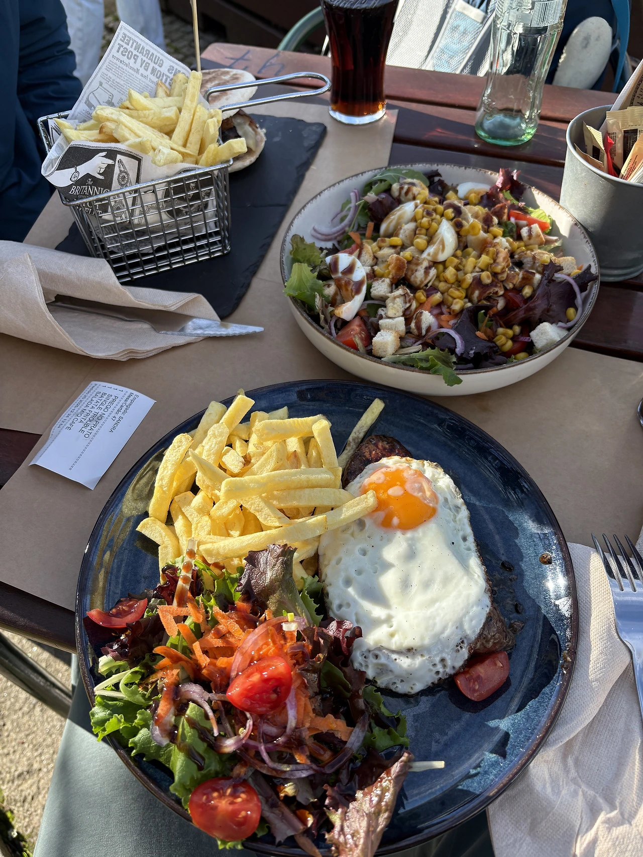 Caminha는 다행히 생각보다 큰 마을이었다. 크리스마스이브인데도 불구하고 연 식당도 꽤 다양했고, 마을 사람들도 연말 분위기를 한껏 내며 햇살을 쬐러 광장에 모여 앉아 있었다. 우리도 광장 한가운데 있는 햄버거 가게에 자리를 잡고 콥샐러드를 비롯해서 각자 순례자의 식사에 걸맞은 단백질 위주의 든든한 메뉴를 주문해서 배불리 먹었다. 반가운 상점도 하나 있었는데 바로 약국이었다. 나는 내가 이렇게 약국을 좋아하는지 몰랐다. 한국에서는 1년에 약국을 두 번 갈까 말까 한데, 열하루 동안만 약국에 세 번 들렀다. 사실 약국에는 다 떨어진 파스를 구입하기 위해 방문한 건데, 약국 한가운데 큰 우산꽂이 같은 데에 스틱(목발)이 종류별로 가득 꽂혀 있었다.