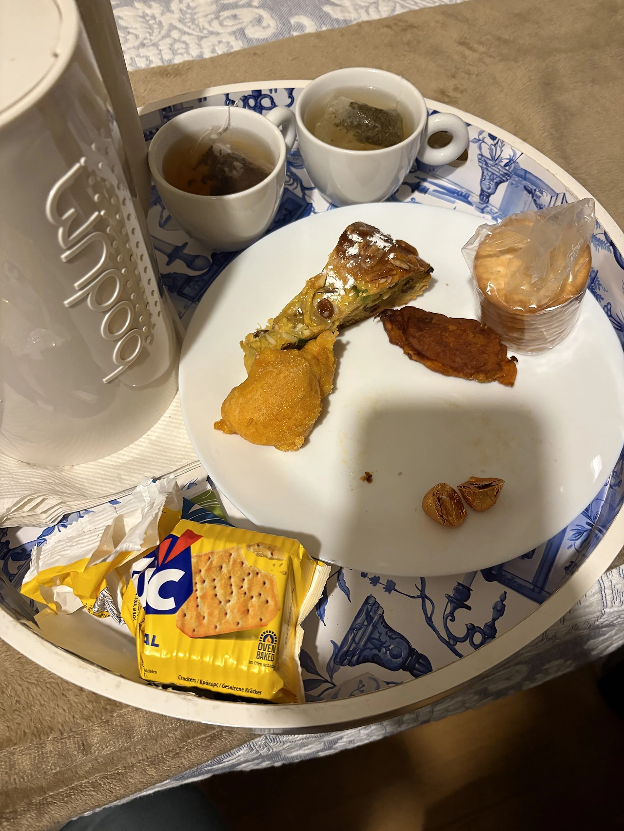 "형, 내가 빵을 자를 테니 형이 빵을 골라." 그렇게 공평하게 자르고 분배된 빵 네 조각과 뜨거운 물에 우린 티 두 잔으로 평생 기억할만한 크리스마스이브 저녁(?)을 해결했다. 그간 내가 쓴 글을 쭉 읽어온 독자라면 눈치챘을 수도 있는데, 드디어 오늘 이스터에그를 하나 떡밥 회수하자면 이 티백들이 바로 아조레스 에어라인에서 승무원께서 비행 로그북에 붙여준 아조레스 산 티백이었다. 둘 다 홍차였는데, 두 번 세 번 우려 마실 정도로 맛이 좋았다. 뭔가 수첩 사이에 붙은 티백을 뜯어서 실제로 마시니까 굉장히 아날로그적이면서도 퍼즐이 맞아떨어지는 느낌이 들었다. 머무는 숙소부터 시작해서 마시는 티 한잔까지도 내 주위의 따뜻한 마음과 손길이 닿아 있다고 생각을 하니 더더욱 감흥이 컸다.