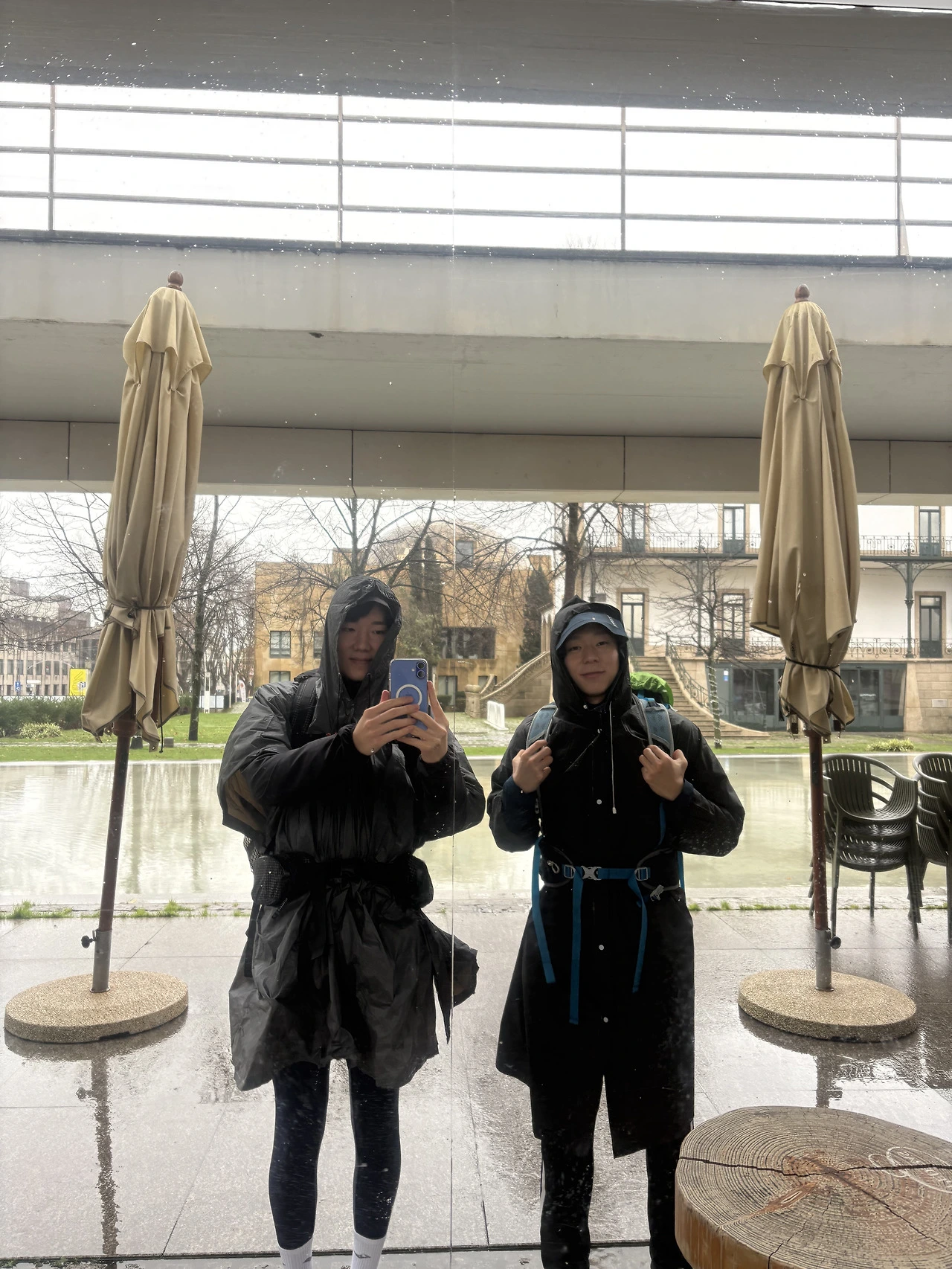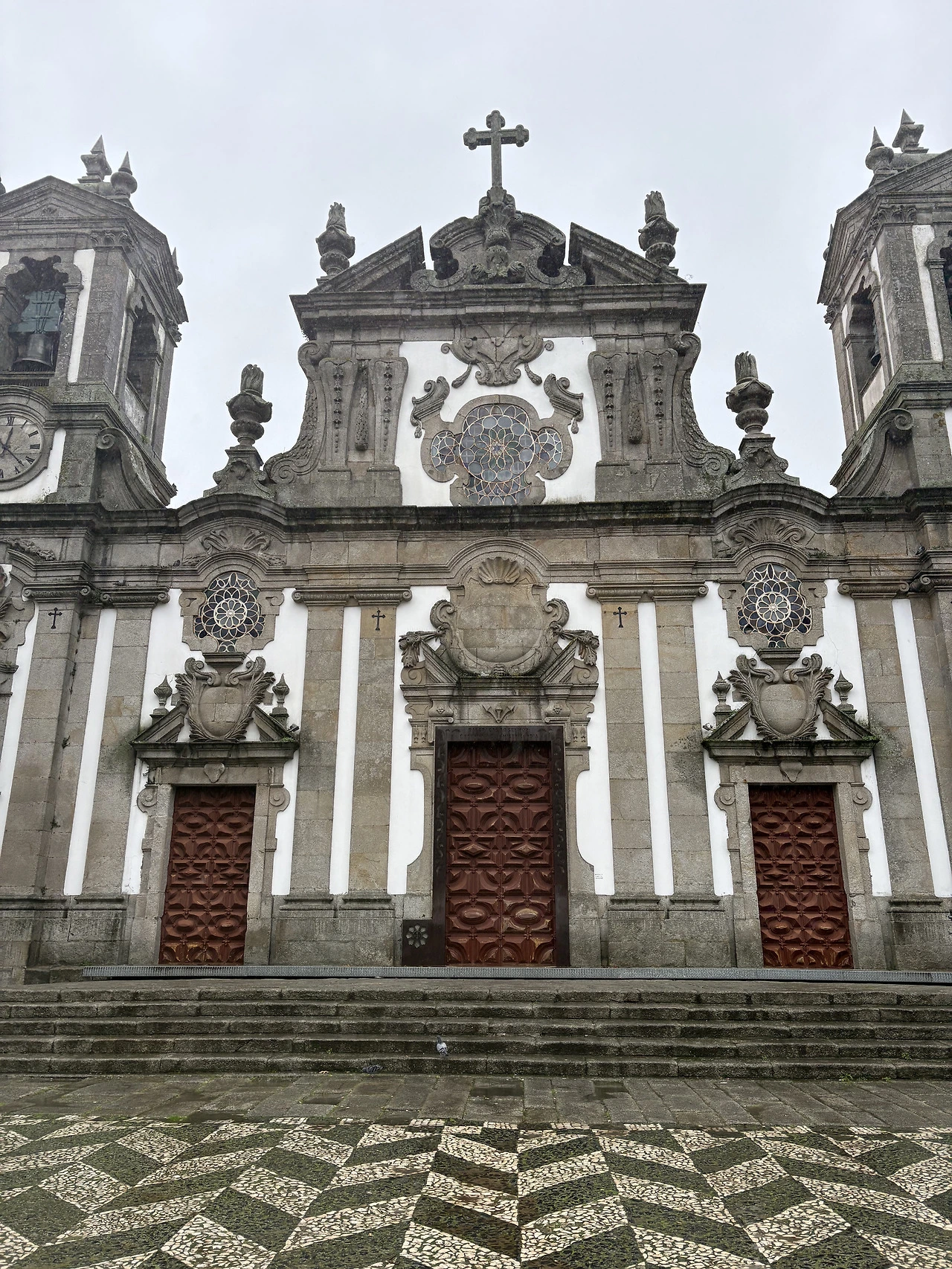 운명의 장난같이 출발 15분 만에 비가 내리기 시작했다. 꽤 강한 비였다. 런던에서 교환학생 할 때처럼 무심하게 맞으면서 지나갈 그런 비가 아니라, 조금만 맞아도 양말 사이에 물이 들어차고 시야가 흐릿해질 정도의 그런 비였다. 오전 10시에 출발해서 11시 13분에 형이 처음 촬영한 우리의 시작 영상이 있는데 이 영상 속 우리는 각각 우비와 판초우의를 뒤집어쓰고 웃으며 걷고 있다. 비가 정말 미친 듯이 올 때쯤 우리가 계획했던 첫 경유지인 Paroquia do Salvador de Matosinhos라는 웅장한 성당 앞에 도착했다.