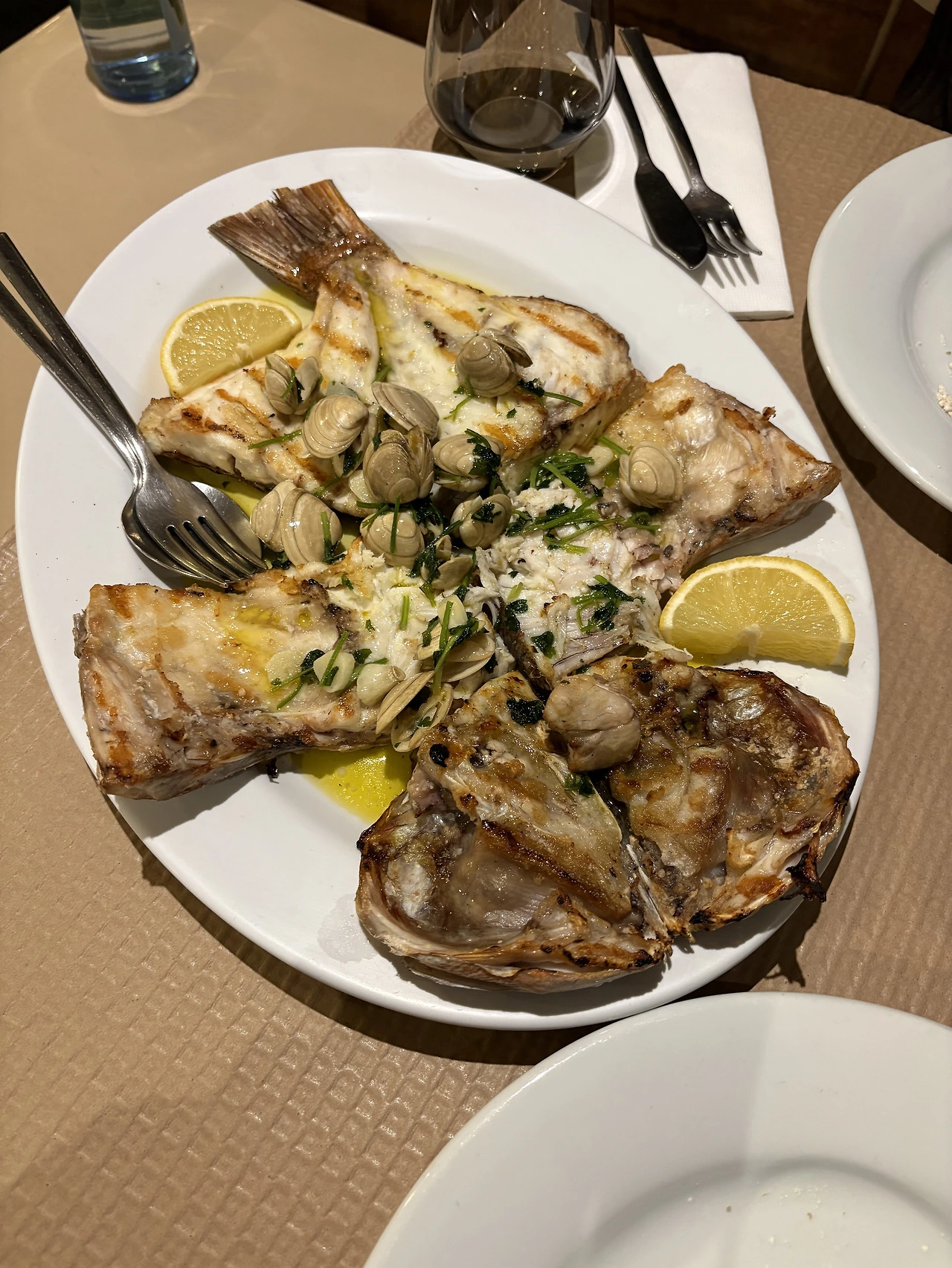 대충 짐을 풀고 곧바로 근처에 연 몇 안 되는 식당들을 향해 발걸음을 옮겼다. 자랑 아닌 자랑을 하나 하자면 내가 식당 하나 기갈나게 잘 고르는 것 같다. 해안가이니만큼 해산물 요리를 하는 식당이 좋겠다 싶어서 Restaurante Salitre라는 곳으로 갔는데, 처음에는 이 날 저녁 예약 만석이라고 거절을 당했다. 그래서 슬쩍 예약 타임테이블을 봤더니 8시부터 X자가 잔뜩 있는 것이었다. 당시 시간은 7시 10분쯤, 50분이면 진짜 다 먹고 계산까지 하고도 남는다고 말씀드렸더니 웃으면서 들여보내 주셨다. 이 또한 정말 감사한 일이었다. 이때부터는 온몸에 진이 빠져서 메뉴 들여다볼 여력이 없어서 그냥 주인장 믿고 맡김(오마카세라고 많이 하던데 우리말로는 믿고 맡김이라고 하지요)으로 주문했다. 가시가 있거나 비린내가 심한 생선을 별로 좋아하지 않는데, 이 날 먹은 생선 요리는 정말 훌륭했다. 생선 살도 정말 짭조름하고 함께 나온 빵도 잘 어울려서 든든히 잘 먹고 첫날을 기분 좋게 마무리하게 돕는 그런 식사였다.