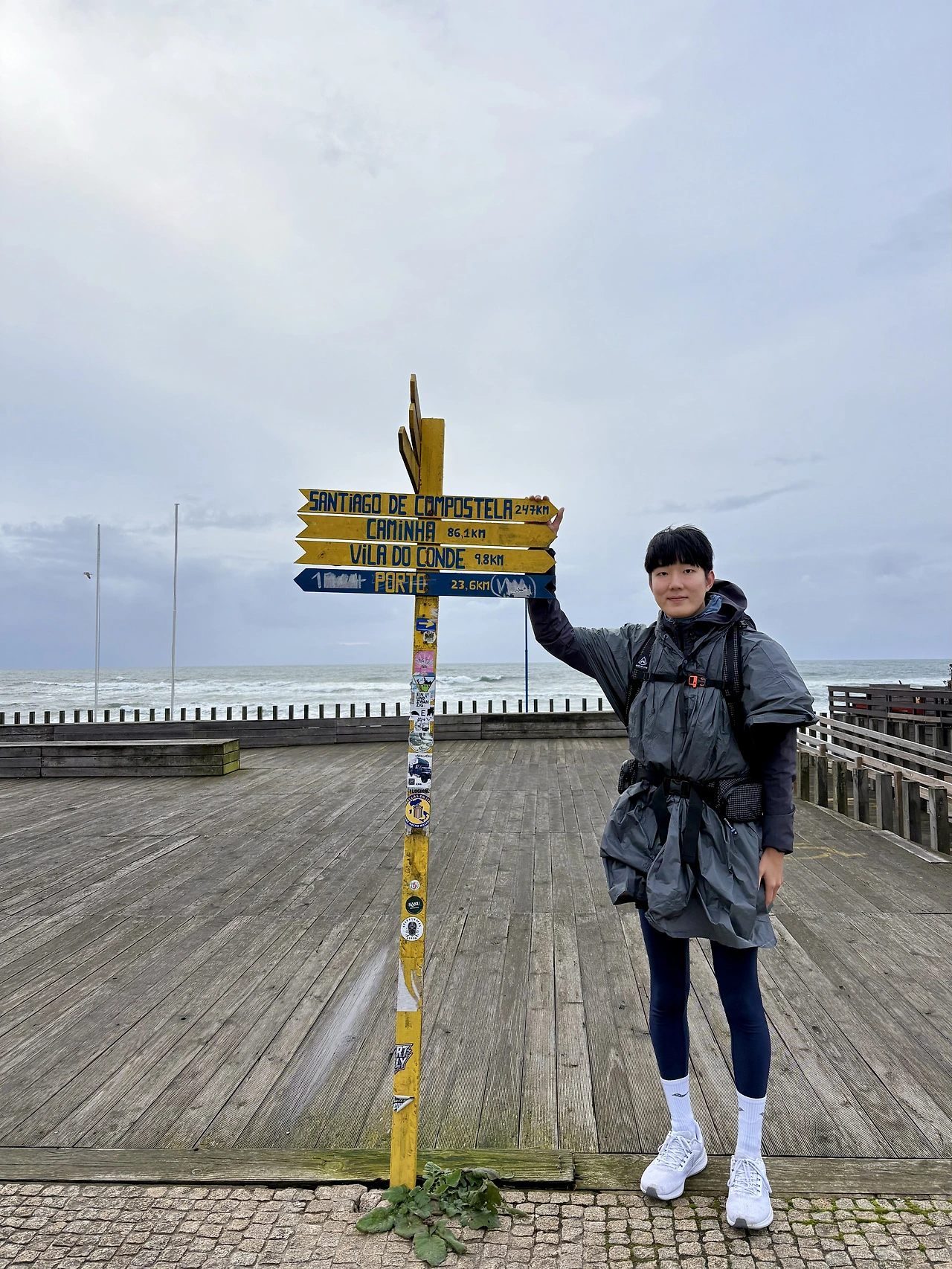 이때부터는 경로가 좀 간단했다. 그저 해안가를 따라 쭉 북쪽(스페인 방향)으로 발걸음을 옮기면 되었다. 그러다가 예쁜 포토 스폿이 나오면 멈춰 서 사진도 찍고 즐기면서 걸었다. 며칠쯤 지나면 몸도 마음도 급격하게 지치는 때가 오는데, 이 때는 찍은 사진과 영상도 정말 첫날에 비하면 현저하게 적다. 아무튼 오후 4시 30분쯤 Santiago de Compostela 성당까지 247km 남았다는 화살표와 함께 인증숏을 남기면서 형과 농담도 주고받았다. "형, 이거 생각보다 너무 쉬운데?" "상원아, 우리 하루 30km씩 걸으면 8일 컷 하겠는데?" 뭐 이런 경솔하기에 짝이 없는 무서운 농담들을 주고받았던 것이다.