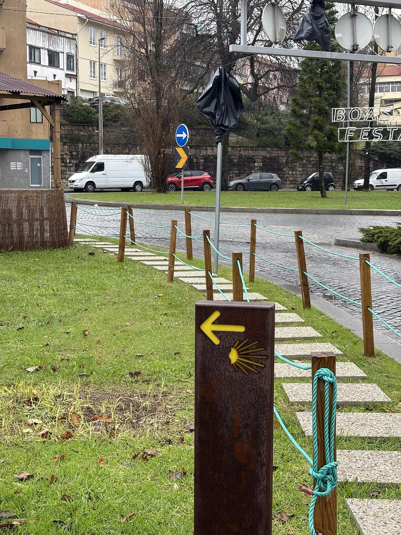 잘 먹고 잘 충전하고 심기일전해서 다시 걷기 시작했다. 우리는 정말 준비가 안 된 바보였기에(매번 걸으면서 서로한테 "너 MIT 석사 맞아?" 혹은 "형 Oxford 박사 맞아?"를 주고받을 정도로 바보 같은 시행착오를 자주 겪었다.) 3일 차인가 4일 차까지는 Camino 공식 애플리케이션을 설치하지 않고 구글맵과 화살표만을 철저히 의지하면서 걸었다. 그래서 정말 많이 돌아가고 가끔은 가지 말아야 할 위험한 경로로 산행을 하다가 발목과 무릎을 다치기도 했다. 지나고 보면 다 추억이지만, 혹시라도 이 글을 읽으면서 포르투 해안가길과 스페인 Tui 내륙길을 거친 산티아고 순례길을 계획하고 있는 사람이 있다면 반드시 Camino 공식 앱에 의지하길 바란다. 이 바보들은 오후 2시에 처음으로 Camino de Santiago 가리비 껍데기 로고와 화살표가 적힌 안내판을 발견하기에 이른다.