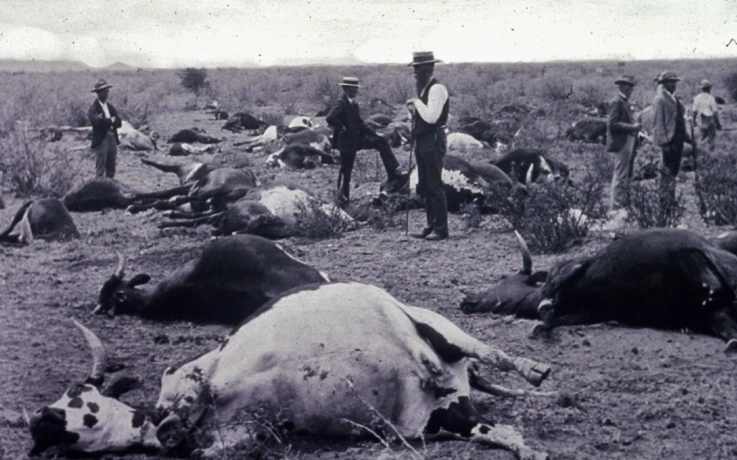 그러나 1880년대가 되자 아프리카에는 유래 없는 대재앙이 찾아온다. 이탈리아인들이 에티오피아를 식민지화하면서 인도에서 들여 온 가축이 발굽동물에 치명적인 우역(牛疫: rindefest) 바이러스를 아프리카로 옮긴 것이다. 우역에 면역력이 전혀 없던 아프리카의 가축과 야생동물은 맥을 못 춘다. 우역은 지역에 따라 80-90%의 무서운 치사율을 보이며 중앙 아프리카를 완전히 황폐화시킨다.