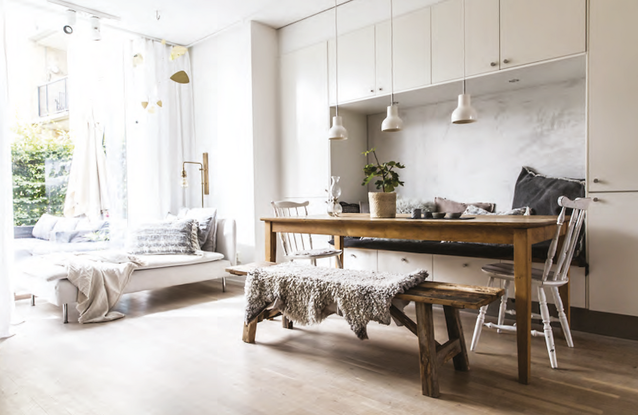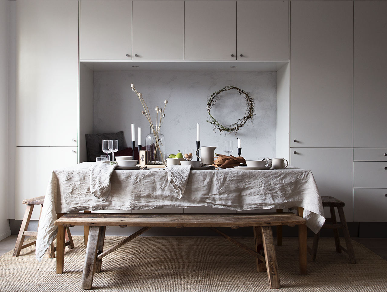 장식에 있어서 스칸디나비아 스타일은 많은 절제 (restraint)를 요구한다. 벽의 컬러는 주로 화이트 톤이 주류를 이루며 밝은 그레이(light grey) 나 빛 바랜 블루 (pale blue)가 보이기도 한다. 이러한 절제는 공간을 밝게 해줄뿐 아니라 매력적이며 고요한 느낌을 준다. 실용성과 심미적인 매력이 부각되어야 하는 가구나 액세서리 부분도 신중하게 고려되어야 하는 항목 중의 하나이다. 프릴 장식이나 과한 디자인 요소들은 더 이상 필요 없다고 보여진다. 단 하나의 작은 아이템이라도 그 공간에 생기를 불어 넣어주며, 모든 부분에 있어서 아름다움을 느낄수 있다면 충분하다. 또한 자연에서 가져온 다양한 소재들의 조합은 매우 중요한 역할을 하게 된다. 나무, 울, 린넨, 유리, 점토, 등과 같이 자연의 텍스쳐를 통해서 우리는 따뜻하게 누군가를 맞이하는 듯한 느낌을 교류하게 된다. 궁극적으로 우리의 집은 바쁜 세상에서 잠시 휴식할수 있는 오아시스와도 같은 곳이 되어야 한다.