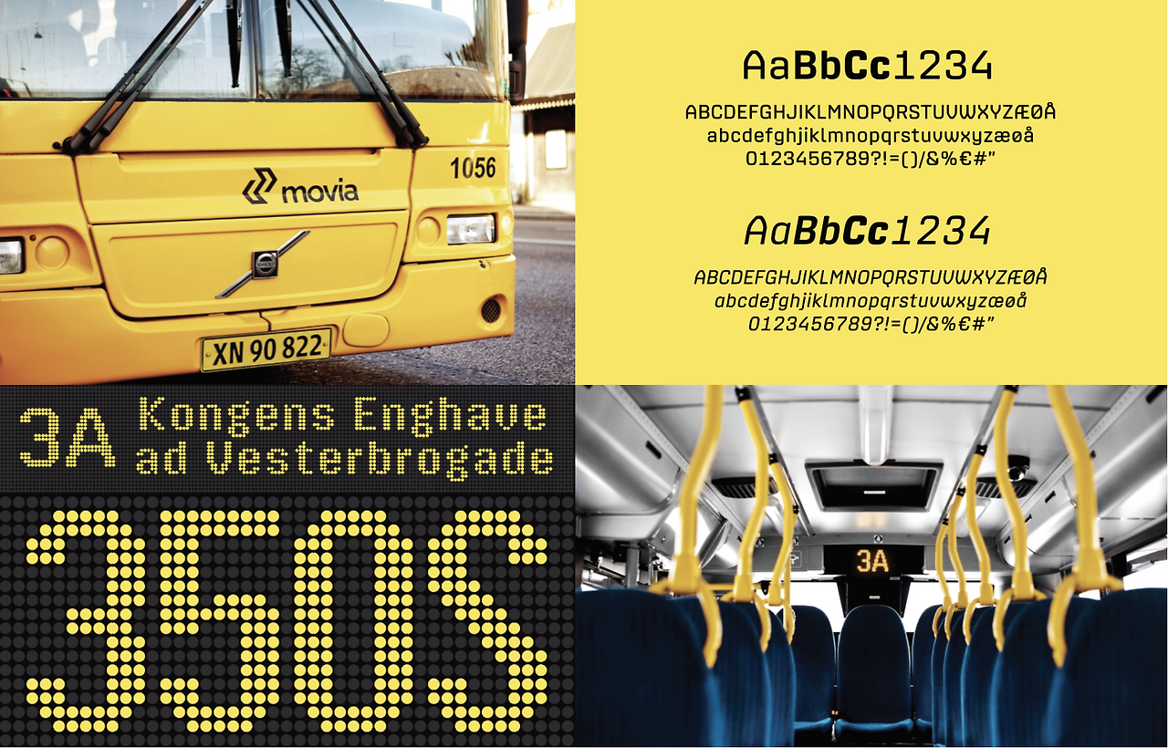 덴마크 운수회사 모비아 (movia)의 리브랜딩 작업. 타이포그래픽과 컬러 등 통합적 브랜딩 제안 ©Kontrapunkt