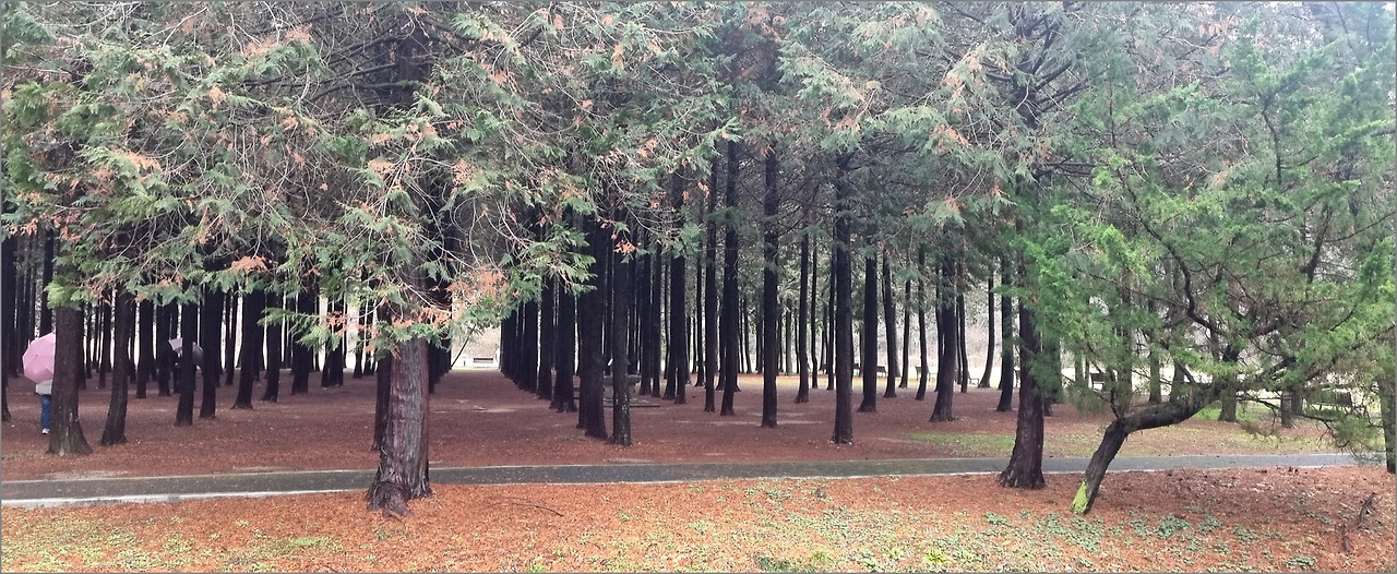 배를 불리니, 편백나무 숲에서 힐링하고 싶은 마음에 달산수원지를 찾았다. 달산수원지는 행정지로는 무안에 속해 있지만, 소유는 목포시가 하고 있다. 피크닉공원으로 유명한 이 곳은 편백나무 숲에서 취사가 가능해 주말이면 고기구워 먹으로 오는 사람들로 북적인다고 한다. 내가 찾은 날은 평일이기도 하고, 가랑비가 지속적으로 내리고 있어, 한가한 가운데 마음껏 편백나무가 뿜어내는 신선한 공기를 마시고 왔다.