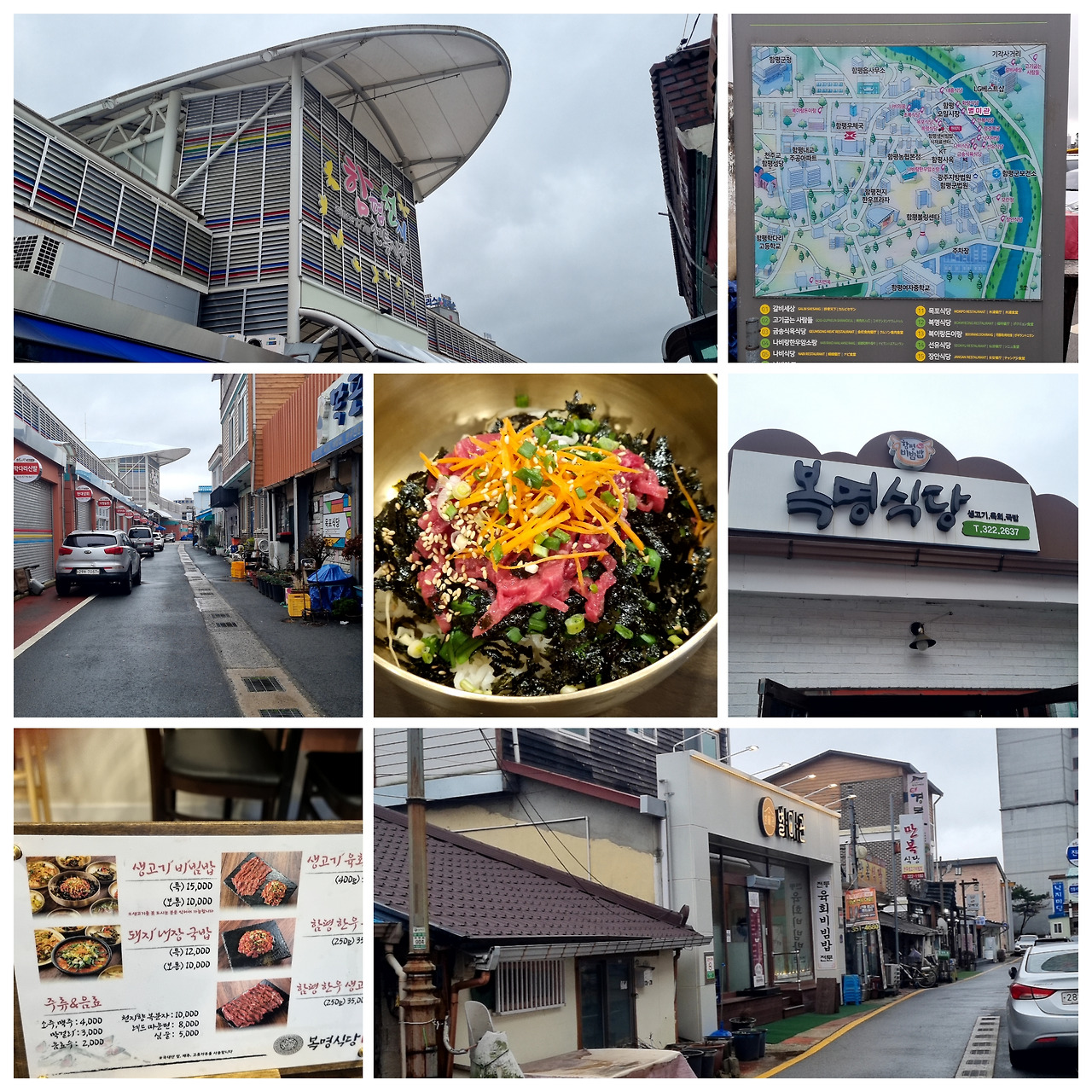 다음으로 찾은 곳은 함평 시내에 있는 전통시장이다. 마침 어제가 장날이어서, 조용하고 차분하였다. 함평에서 가장 유명한 음식은 ‘생고기 비빔밥’이다. 사람들은 화랑식당이나 대흥식당을 이야기 하지만, 지역의 토박이는 ‘복명식당’을 추천한다. 3대에 이어 식당을 운영하고 있고, 생고기 비빔밥이 정갈하다고 한다. 또한 주인에게 따로 돼지비계를 시켜, 비빔밥에 같이 비겨 먹으면 고소한 맛이 더할 것이라 팁까지 준다. 가격도 비교적 저렴하고, 맛도 담백하고 고소하여, 전날 신안 지도읍에서 먹던 거랑 비교가 되었다.