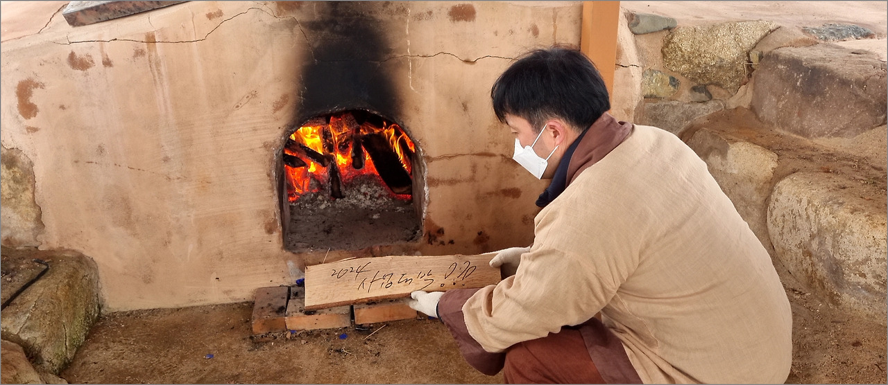 따로 마련된 간이 카페에서 커피도 한잔하고, 푸드트럭에서 갖가지 먹거리를 사 먹으며 여유를 부리는데, 한 쪽에서 장작에 소원을 써서 가마에 태우며 성취를 비는 행사를 하고 있는 것이 눈에 들어왔다. 단 돈 천원에 큰 장작을 받아 든 나는 ‘2024 사업대박’을 기원하는 행사를 거행하였다. 청자축제에서 이런 행운의 이벤트를 할 수 있어 즐거웠다.