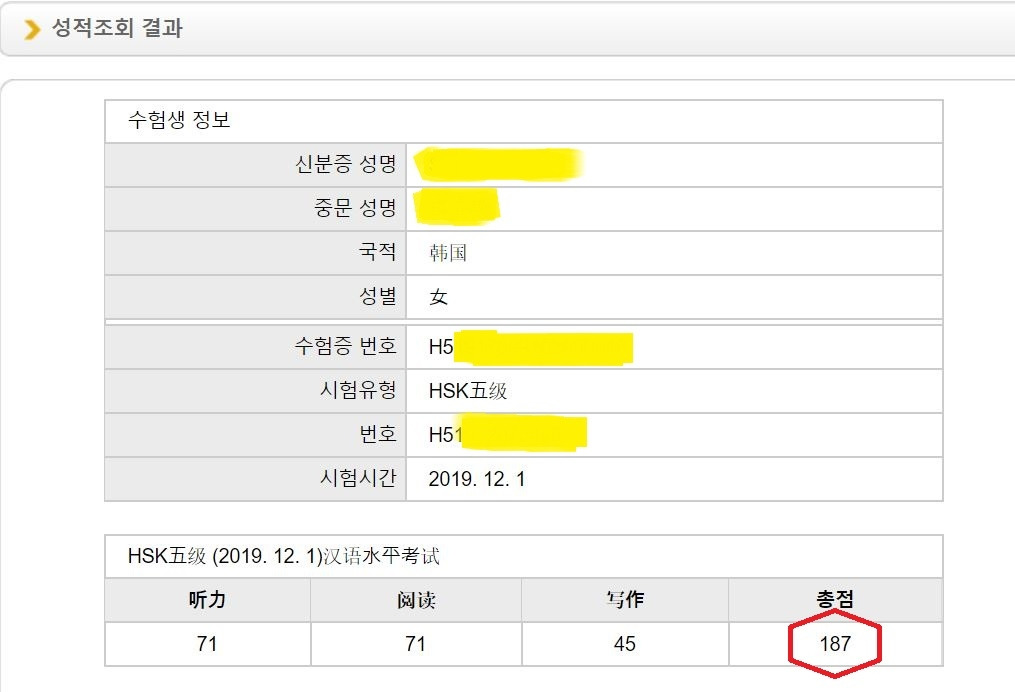 HSK가 무엇인지, 각 급수별 난이도와 4급 합격수기는 이전 글을 참조