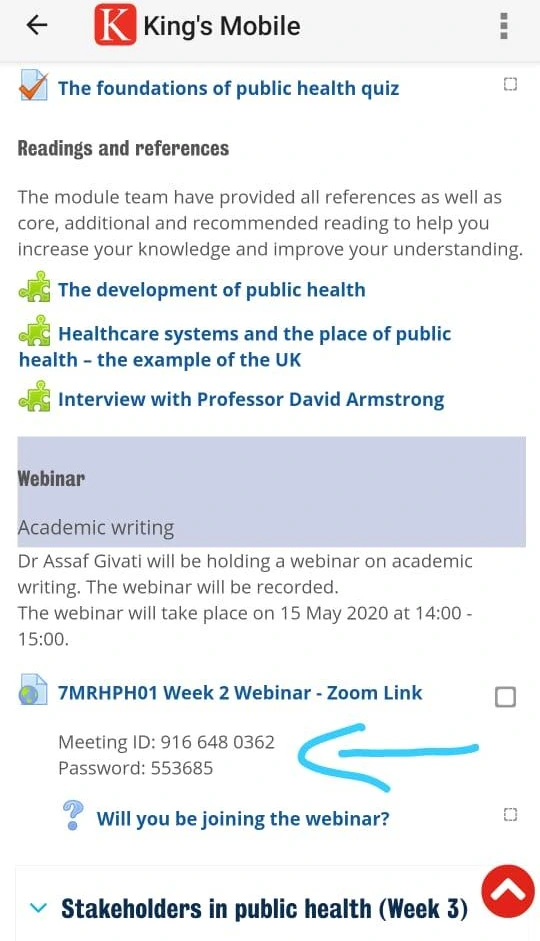 온라인 석사 과정 1주 차 수업을 시작했다. 수업 영상들과 퀴즈, 레퍼런스 논문들이 있는 링크들이 하나씩 달려있다. 해당 주차 맨 아래쪽에 그 주에 해당하는 웨비나 링크가 달려있다.