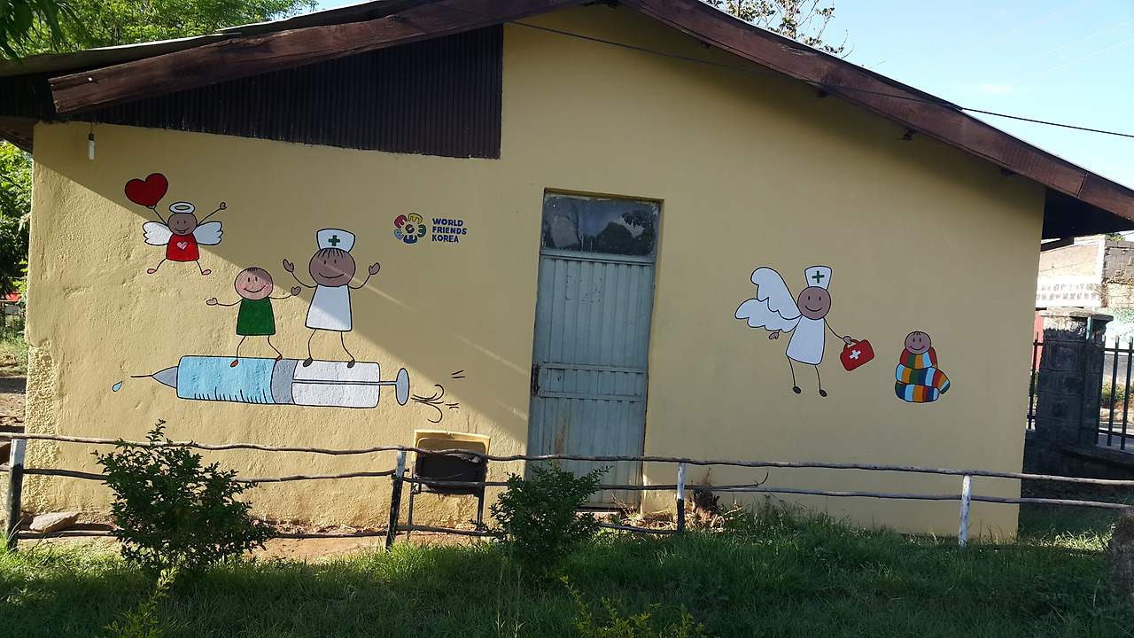 그러던 중, 기관장이 소아과 외벽에 남은 면들에 아이들을 위한 벽화를 그려줄 수 있냐는 요청을 받았다. 아무래도 기관장 회의(봉사단원의 기관장들을 모두 한 곳에 모아 워크숍을 연례행사로 진행함-from 코이카 사무소)에서 선배 단원의 벽화작업 얘기를 듣고 솔깃했던 것 같다.