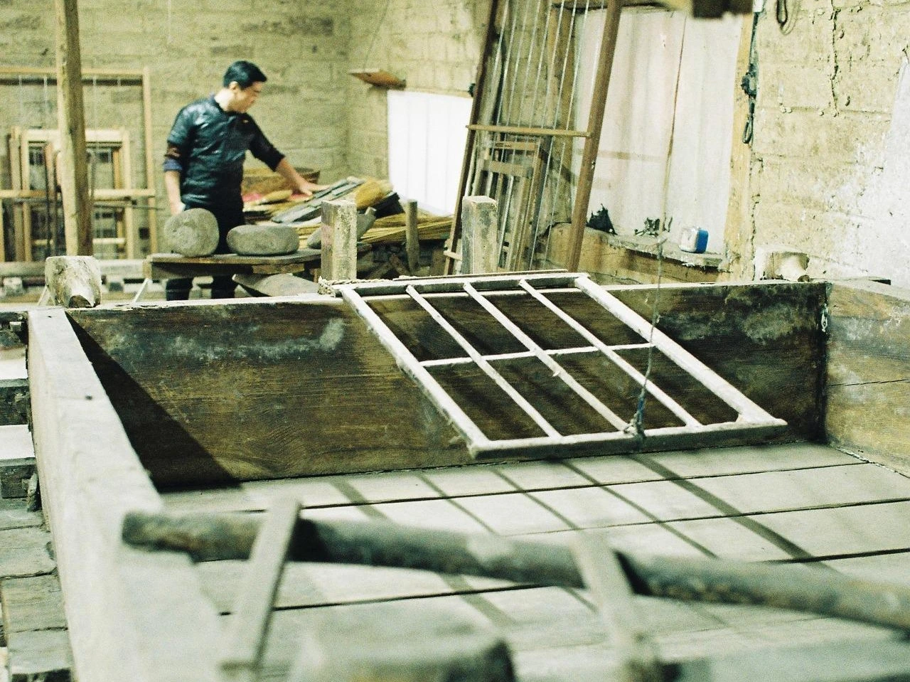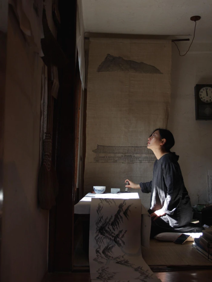 ‘뿌리에 기댄 창작’, 그러니까 오래 전부터 이어 오는 지혜의 산물들을 재료로 사용한 창작을 하겠다고 생각하면서 마음이 편해졌어요. 그런 재료들을 통해서 우리 뿌리의 정신과 의지를 알게 됨과 동시에 그것들이 모두 자연으로부터 얻어지는 것들이기 때문이었어요. 비로소 고향에 온 것 같다고 생각했어요. 최근에 땅을 걸어 국토의 지리를 산수로 그려내는 이서재 지리지를 전시 했었어요. 그 화첩은 제대로 잘 만든 전통 한지와 전통 먹을 사용하였습니다. 닥나무를 재배해 종이를 얻어내는 일은 꼬박 한해 농사와 같은 일들이었고, 소나무 한그루를 가마에서 태워 그을음을 채취해 하나의 먹을 만드는 과정은 놀라운 지혜의 산물이었습니다. 그 과정에서 재료를 얻게 된 지혜가 아궁이가 있고 흙과 나무로 만든 옛 ‘집’의 구조에서 파생된 방법들이 구나 생각했어요. 또, 흙이 도자가 되고 물이 술이 되는 과정을 접하면서 불에 가두었다가 식혀 물성이 변하는 공통된 현상들을 이해하게 되어 놀랐습니다. 옛 문화가 이루는 방식이 삶의 근거와 다르지 않은 것이지요. 재료들을 알아가면서 우리가 자연을 대해 온 방식과 태도를 배우게 됩니다. 다만 옛 천연의 재료들은 그 특성 때문에 다루기가 쉽지 않거나 오롯이 자연의 산물이라 바깥의 기후와 습도와 함께 변형되는 부분들이 있어 감수해야 하는 부분들도 있지요. 그 조차도 자연의 일부라고 봐야 하는 것이 아닌가 생각이 들어요.
