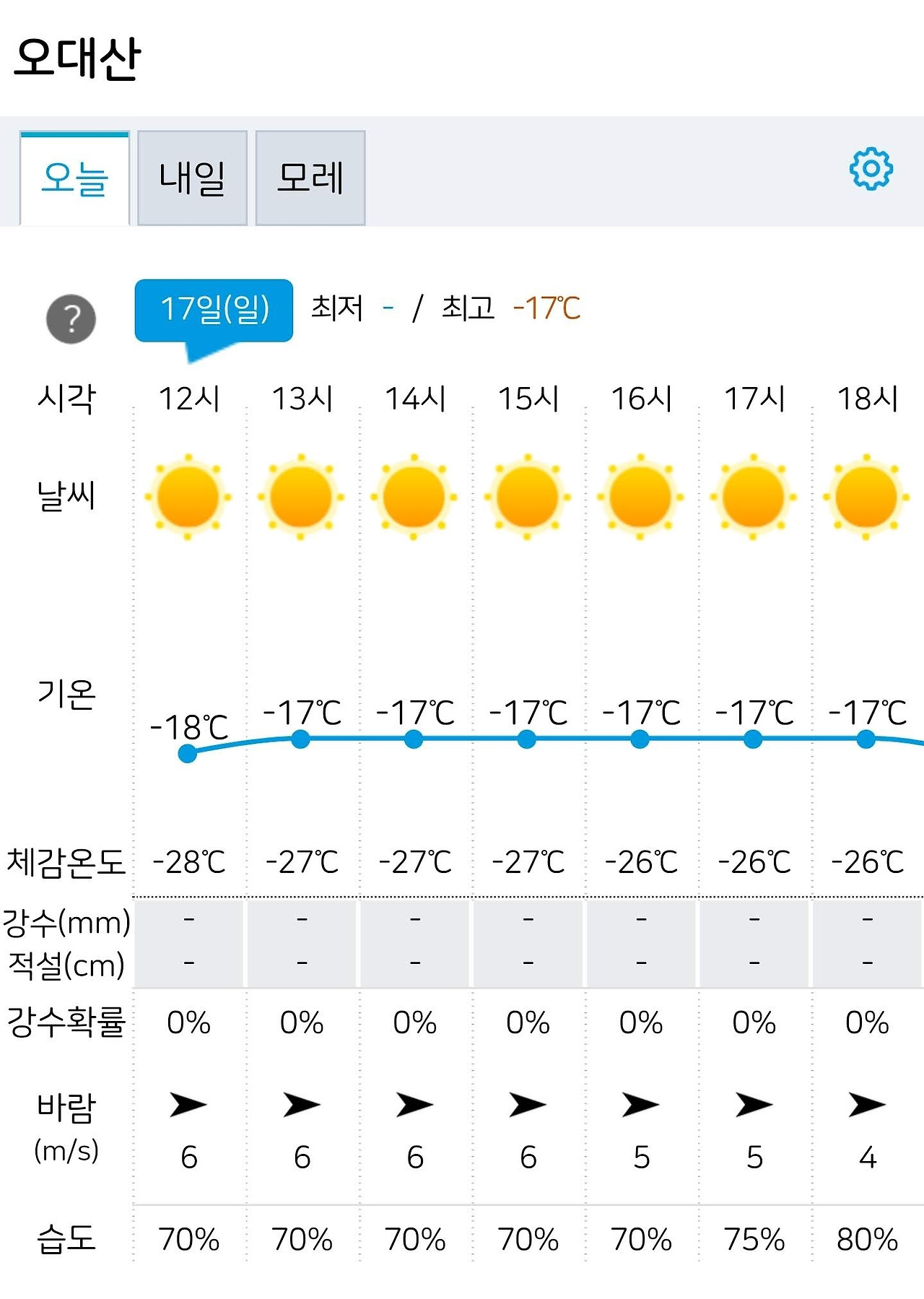 온도계를 보니 영하 17도, 습도는 56퍼센트였다. 아직은 바람이 불지 않아서 걷다 보니 추위를 모르고 있었다. 머리 위로 올라간 땀은 그대로 얼어서 머리카락과 모자에 하얗게 달러 붙었다. 머리 위엔 눈인지 땀인지 구분이 되지 않은 하얀 결정들이 모이기 시작했다. 이대로 얼려두면 체온유지에 좋지 않아서 털어가며 등산을 했다. 입김도 얼어붙어 속눈썹을 하얗게 만들었다. 그래서 눈을 감았다 뜰 때마다 새벽에 눈 뜰 때처럼 눈이 붙어 잘 떠지지 않는다.