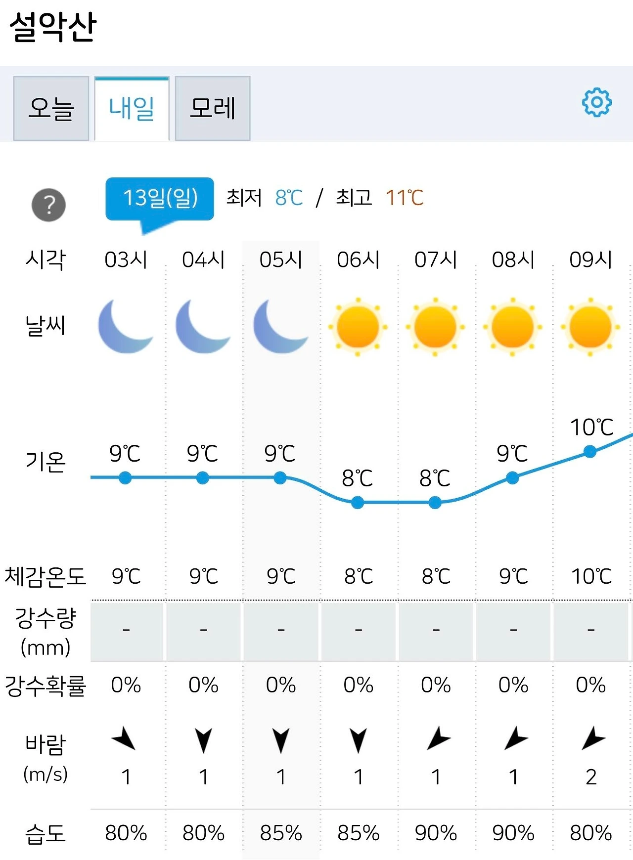 안내산악회 버스를 타기 위해 사당역에 도착을 했다. 밤 11시가 넘은 사당역에는 늦지 않게 집에 가기 위해 뛰어가는 사람들과 얼마 남지 않은 하루를 즐기기 위해 삼삼오오 모여서 이야기를 나누는 사람들로 북적였다. 그리고 사당역 6번 출구엔 나와 같은 등산객들도 버스를 타기 위해 모여들고 있었다. 나를 설악산까지 안내해 줄 버스가 기다리고 있었고, 지정된 자리를 찾아서 앉았다. 쪽잠을 자긴 했을까, 어느새 버스의 실내등이 켜지고 남설악탐방지원센터에 버스가 도착을 했다. 새벽 2시 45분이었다. 버스에서 내려 하늘을 봤을 때 별들이 쏟아질 듯 보였다. 오늘 설악산 정상의 날씨는 등산하기에 좋은 9도였고, 구름도 바람도 없는 더할 나위 없이 날씨였다.