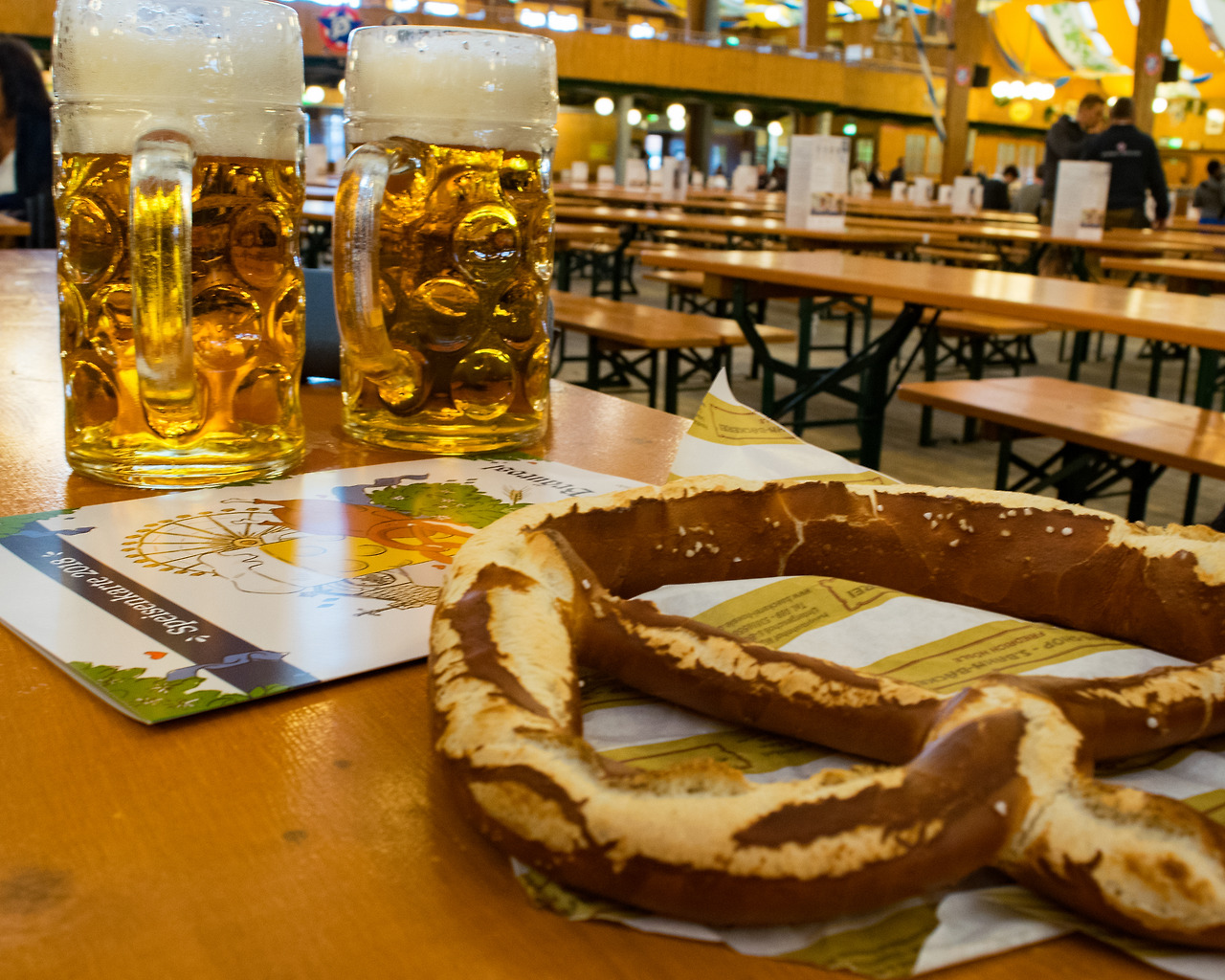 이렇듯 짧은 말이라도 여행을 하면서 현지의 단어를 익혀두면 유용할 때가 많은데, 옥토버페스트에서는 Ein prosit 노래에 맞춰 독일어로 1,2,3을 셀 수도 있고 숫자만 익히면 무리 없이 자신 있게 맥주를 시킬 수도 있습니다. 이때 주의해야 할 점이 몇까지 있는데, 손을 들고 직원을 부르는 행위는 자칫 무례하게 여겨질 수 있으니 최대한 초롱초롱한 눈빛을 보내 주문을 성공시키도록 합시다. 그리고 빈 맥주잔 역시 테이블별로 당담 웨이터가 정해져 있기에 원래 마시던 곳에 두어야 합니다. 메뉴판을 보면 옥토버페스트용 마스 비어는 11.5 이런 식으로 11유로에서 12유로 사이로 가격이 매겨져 있는 것을 알 수 있을 텐데 주로 잔돈을 팁으로 갖는 문화에 맞춰 사실상 한잔에 12유로라고 생각하고 계산을 하시면 편리합니다. 종종 팁을 따로 받지 않는 경우도 있지만 소수점 단위로 가격을 맞춰주면 팁을 따로 달라고 요구하는 경우도 많습니다.