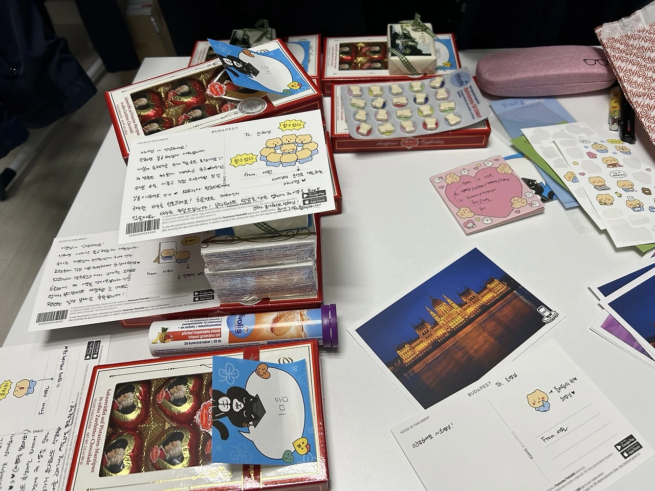 선물을 급히 변경(호주는 음식물 반입 불가라 초콜릿을 미국에 보낼 비누랑 바꿨어요)하고 엽서에 적은 선물 내역도 고쳤던 해프닝도 있었답니다.