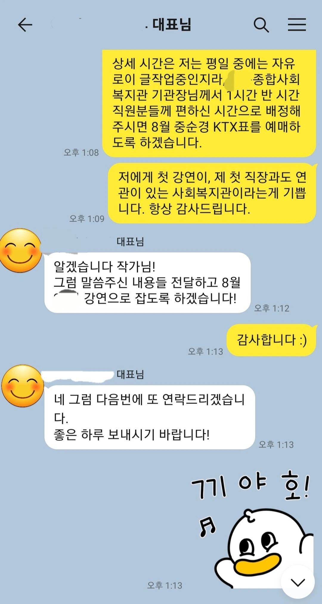 너무 기분이 좋아서 대표님께 끼야호를 보내버렸다.