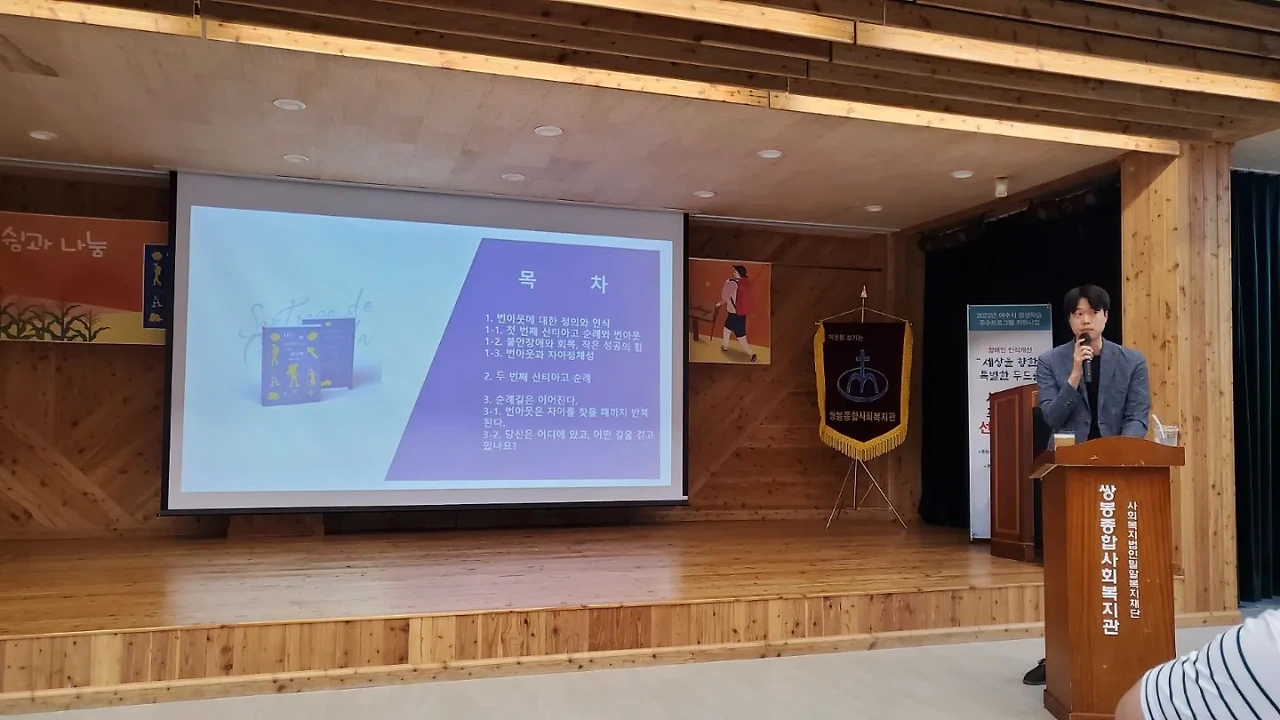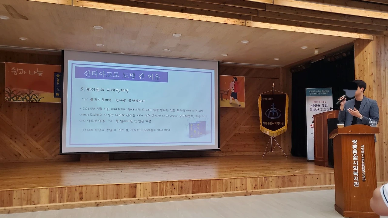 밀알복지재단 여수쌍봉종합복지관에서 사회복지사 직원 25명을 대상으로 제 <나는 왜 산티아고로 도망갔을까?> 책을 바탕으로 번아웃 회복 강연을 진행해 달라는 제안을 해주셨습니다.