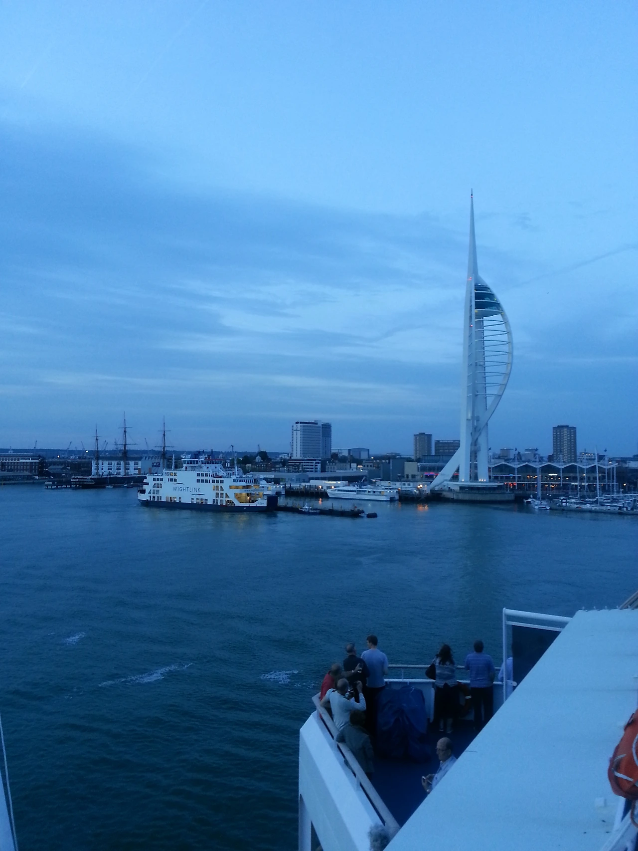 포츠머스의 상징인 첨탑과 항구에 정박되어 있는 배들이 캄캄해지는 하늘과 바다 사이를 경계가 되어 갈랐다.