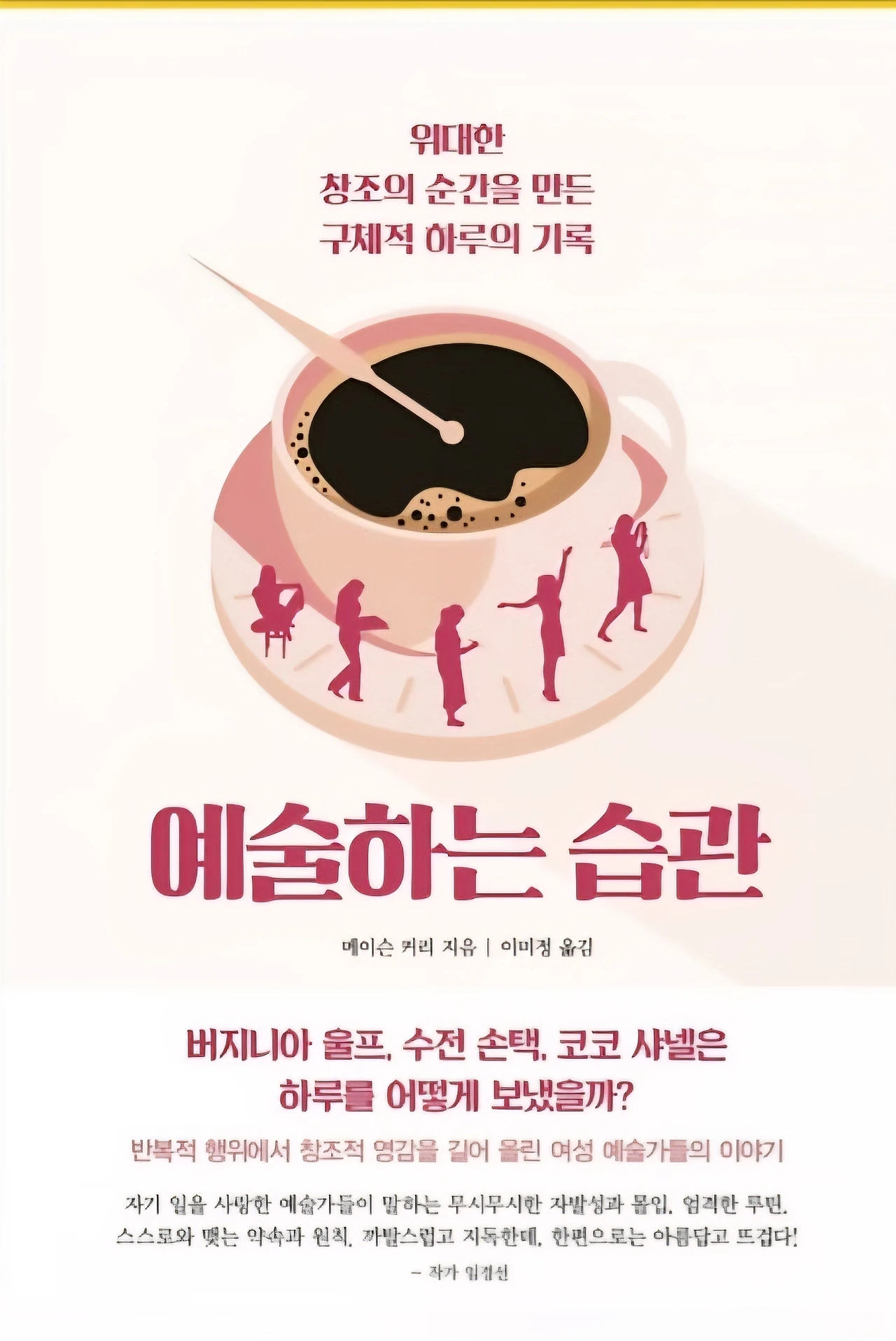 이 책에서 수많은 예술가들의 일상생활에서의 습관을 엿볼 수 있다. 흥미로운 점은 원하는 결과물을 얻기 위해 어떤 공식처럼 정해진 규칙이 따로 있지는 않다는 것이다. 어떤 작가는 일정한 루틴을 철저하게 따르고 있고, 또 다른 화가는 어슬렁거리며 영감이 떠오르기를 기다렸다가 미친 듯이 몰입해서 작품에 매달리기도 한다. 흔한 비유로 산의 정상으로 올라가는 길은 도전하는 사람마다 각기 다를 수 있다는 뜻이라고 생각한다. 여기서 중요한 방법에 관한 분석이 아니라 예술가들은 길을 만들어 가는 사람이라는 사실을 느꼈다. 그 길은 많은 사람들에게 통용되는 방법이라기보다는, 오직 자기에게만 맞는 옷처럼 고유하고 각별한 의미를 지니고 있음을 이 책은 넌지시 전해주고 있다. 그런 의미에서 예술가들은 쉽고 간편한 '모방'에 대해 천성적으로 거부감을 지니고 있는 사람이라고 말할 수 있다. 그들은 출산에 따르는 산통에 해당하는 강박과 우울과 불안과 단조로움과 외로움과 공허와 허무 등 정신적인 괴롭힘에 시달리는 면이 있어 보인다. 특히 여성의 경우에는, 출산과 육아와 가사 노동까지 더해지며 이중, 삼중의 환경적인 제약까지 이겨내야 한다. 그 모든 난관을 헤치고 그들이 받는 보상은 산통 후에 아이(생명)에게서 얻을 수 있는 희열이 아니라면 설명할 도리가 없다고 느꼈다.