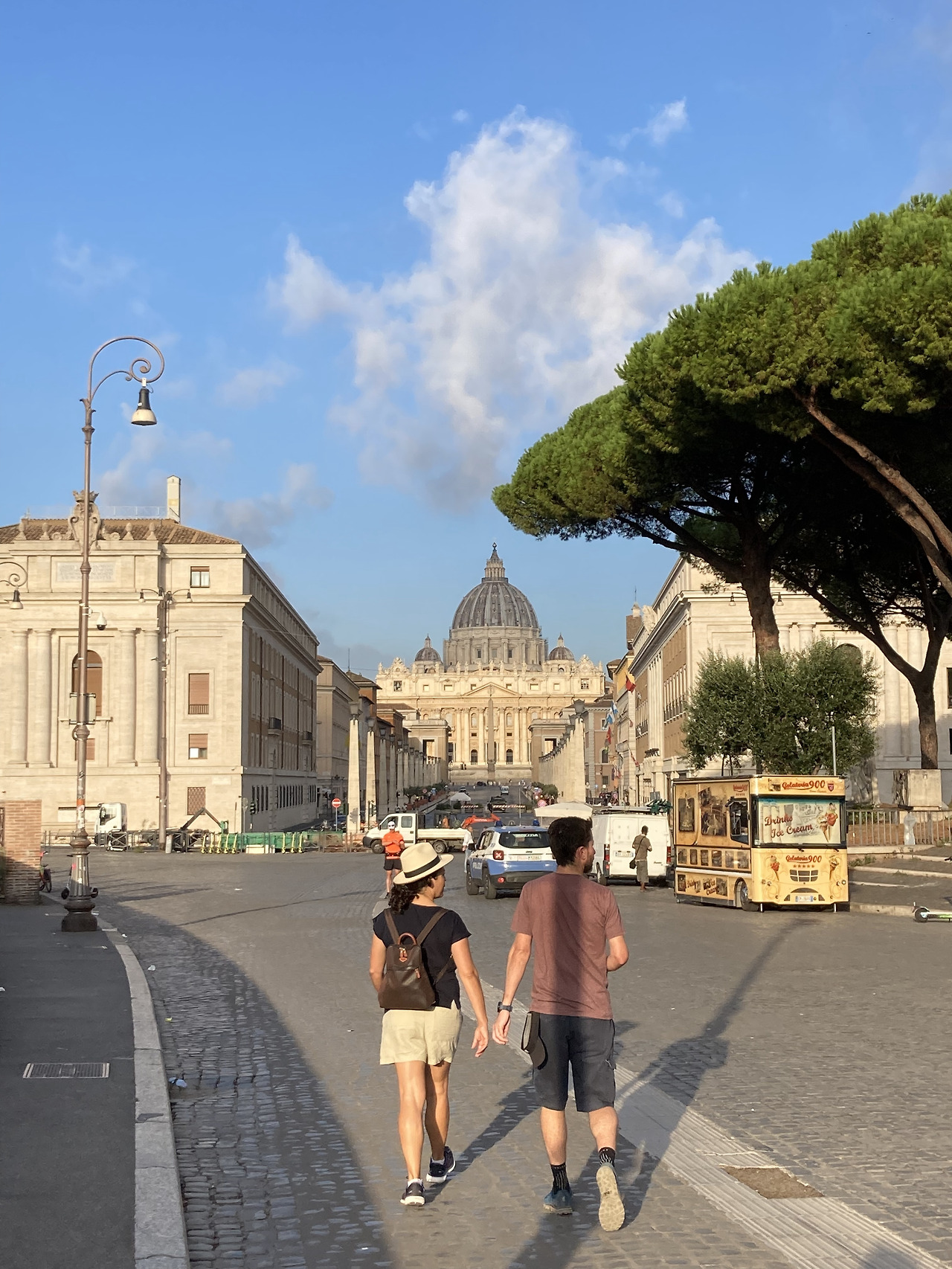 성모 마리아 대성당을 뒤로하고 베드로 대성당을 향해 빠니스뻬르나 길로 접어들었습니다. 로마시에는 버스를 타고 다니면 볼 수 없는 폭이 작은 옛길들이 무척 많이 있는데, 이 길은 그중에서도 중요한 길이라고 할 수 있습니다. 로마에는 많은 성인 성녀들의 유해와 함께 그들의 이야기가 살아 숨 쉬고 있는데, 이 길 위에는 로마인들뿐만 아니라 모든 그리스도교인들이 공경하는 로렌죠 성인이 순교한 자리 위에 세워진 빠니스뻬르나의 성 로렌죠 성당이 있습니다. 성 로렌죠는 성 식스토 2세 교황 시절 로마의 일곱 명의 부제 중에 한 명이었고 산 채로 불이 타오르는 석쇠 위에 눕혀져 258년에 순교하였습니다. 그래서 이 길 이름에 대한 유래도 여러 가지가 있지만 로렌죠 성인의 축일에 가난한 사람들에게 빵 (Panis)과 햄 (Perna)을 나누어주었다는 라틴말에서 나왔다고 이곳의 수사님들은 이야기하고 있습니다. 그래서 그런지 이 길은 식당도 많이 있고 생동감 있는 로마인들과 관광객들이 늘 붐비고 있습니다.