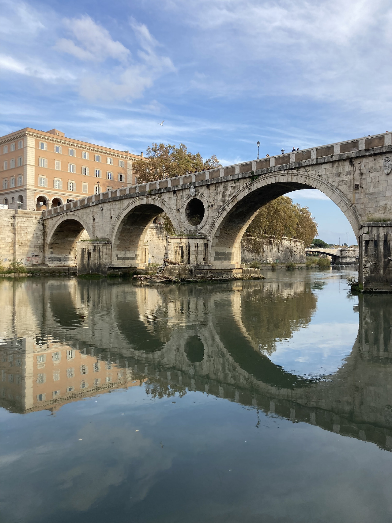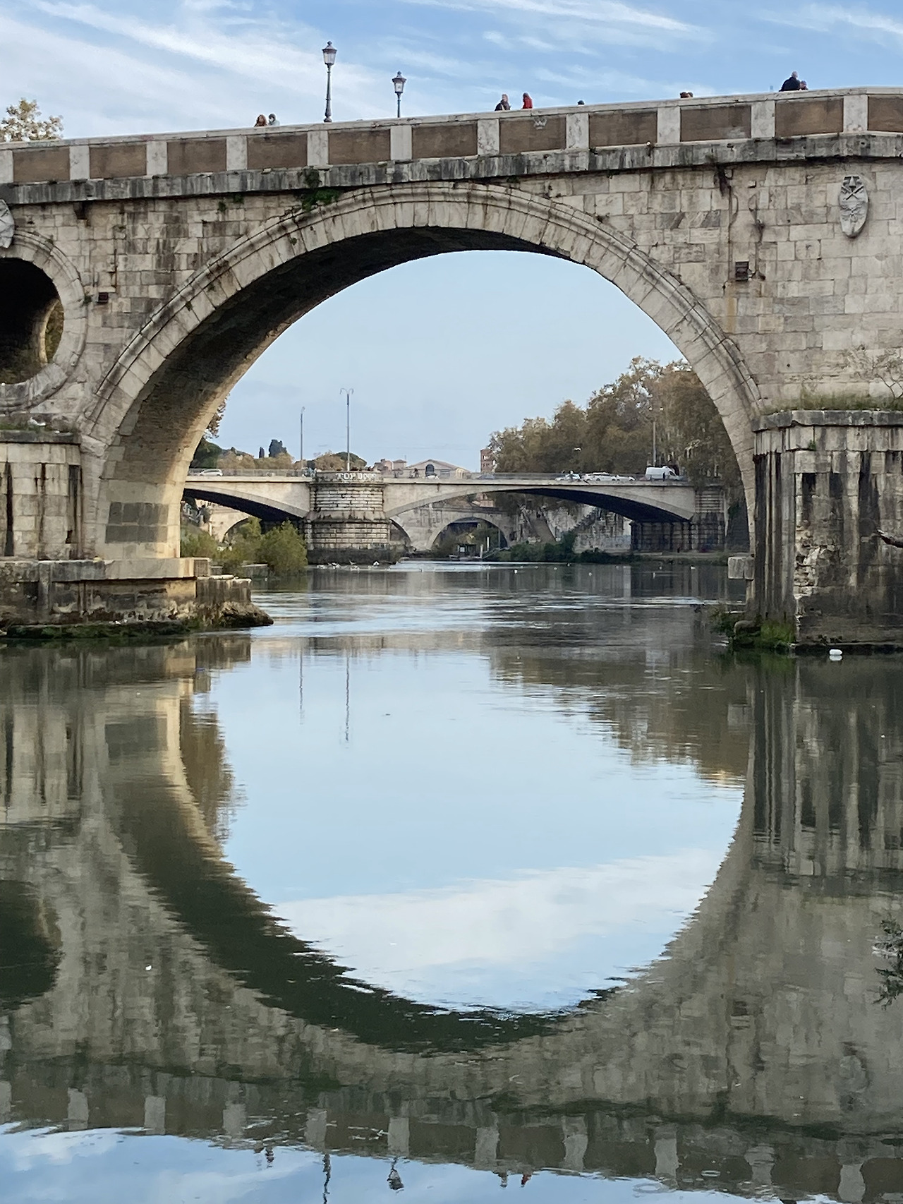 테베레 강 위에는 많은 다리가 있지만, 그중 아름다운 다리를 꼽으라 하면 시스토 다리라고 하고 싶습니다. 이 다리는 미켈란젤로가 그린 천지창조와 최후의 심판 그림이 있는 시스티나 소성당을 만든 식스토 4세 교황에 의해 1473년에서 1479년 사이에 만들어졌습니다. 길이 108미터 폭 11미터로써 네 개의 아치로 이루어져 있고 아치 중간에는 커다란 눈이라고 불려지는 구멍을 가지고 있는데, 이것의 역할은 홍수로 물이 차올라올 때 다리가 받는 수압을 낮춰주는 것입니다. 그러기에 여기까지 물이 차올라왔다는 것은 로마 시민들에게 비상사태임을 알리는 거나 마찬가지라고 할 수 있습니다.