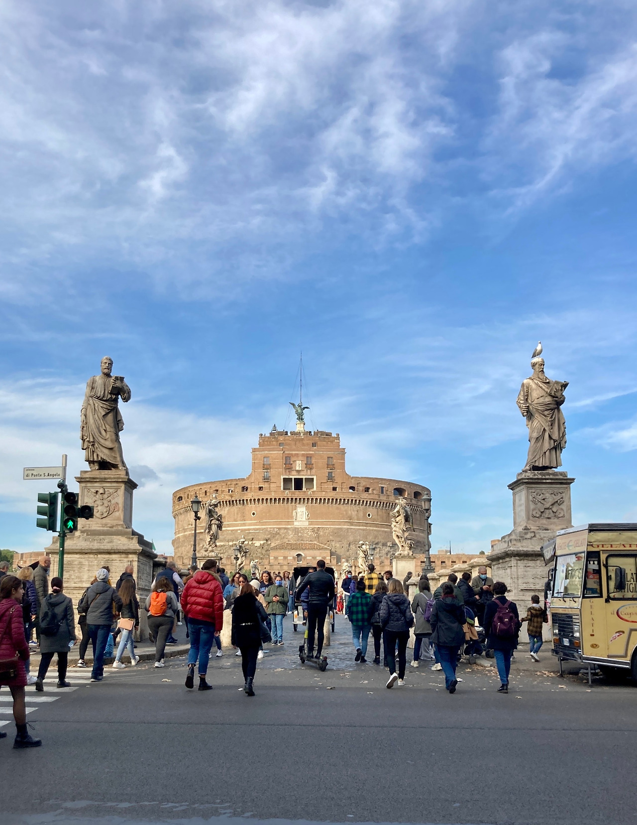 하나는 2세기에 만들어진 아드리아누스 황제의 무덤이고, 다른 하나는 베드로 사도의 무덤 위에 세워진 성 베드로 대성당 (Basilica di San Pietro)입니다. 아드리아누스 황제의 무덤은 403년에 로마를 보호하기 위한 목적으로 성벽에 포함이 되었고 이때부터 성채의 역할로 사용되기 시작하였습니다. 지금처럼 천사의 성이라고 불리기 시작한 것은 590년 그레고리오 1세 대 교황 시절부터입니다. 이 시기에 로마에 흑사병이 번지면서 많은 사람들이 죽어가기 시작하였고, 이것을 막기 위한 방법으로 교황은 회개와 기도의 행렬을 로마에서 하기로 결정하게 됩니다. 행렬을 하던 중 교황은 성채 위에 발현한 미카엘 대천사의 모습을 보게 되었고, 그 후 기적적으로 흑사병은 로마에서 물러났다고 합니다.