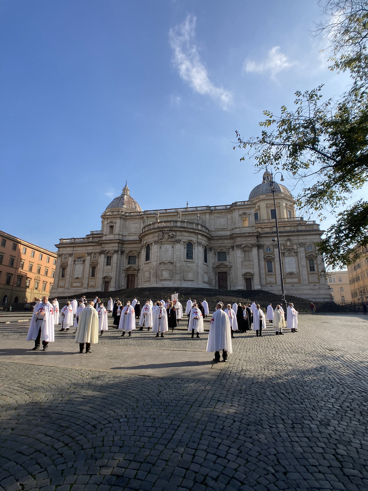 성모 마리아 대성당 (Basilica Papale di Santa Maria Maggiore)은 원래 로마 성벽 밖에 위치하고 있었습니다. 그래서 이 성당이 세워진 언덕의 이름도 '에스퀼리노'라고 부르고 있고 '외부에 거주하는 사람들'이라는 뜻으로 붙여진 이름일 것입니다. 왜냐하면 이탈리아어로 '인퀼리노'라는 말의 뜻이 세입자 즉 집 안에 거주하는 자라는 뜻을 가지고 있기 때문입니다. 이 언덕은 로마 성 밖에 묻힐 무덤이나 땅도 없던 가난한 사람들이 구덩이에 던져지거나 묻혔던 마지막 땅이었습니다. 그래서 성모님께서 이 언덕을 선택하신 것이 아닐까요?