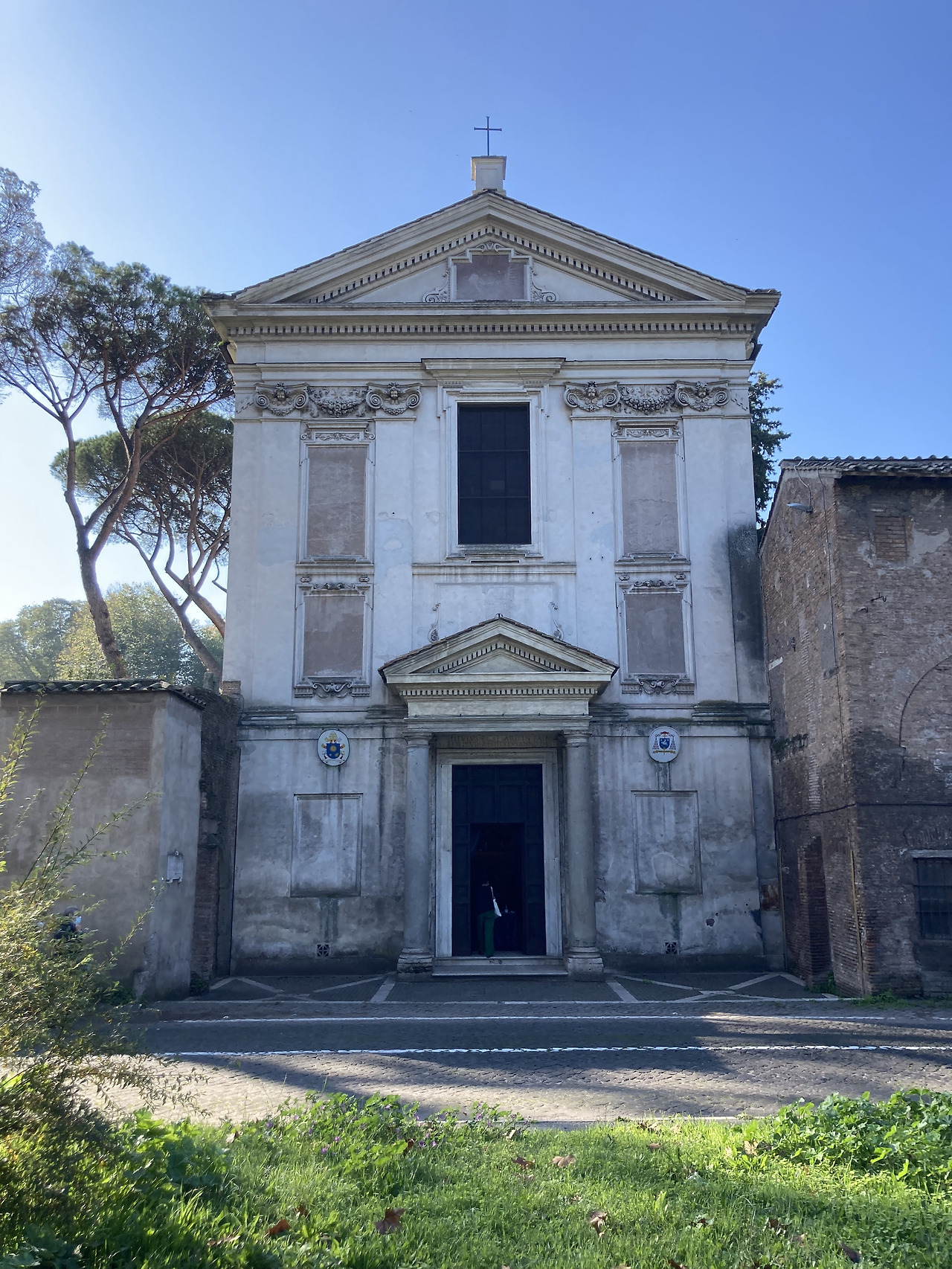 시내를 향해 계속 걷다 보면 라티나 성문의 길이 거의 끝나는 지점 왼편에 기념대처럼 서있는 아피아의 성 체사레오 성당이 나옵니다. 이 성당은 8세기 로마 시대의 건물 위에 지어졌기 때문에 정문이 하나인 정면과 성당 내부도 일반 중세 성당들처럼 기둥으로 나누어져 있는 모습이 아닌 하나의 공간을 가지고 있는 신전과도 같은 모습을 가지고 있습니다. 특이한 점은 복음 선포대, 성직자 석, 제대 그리고 제대를 덮고 있는 치보리움 등이 13세기 유행한 코스마데스코 장식의 대리석으로 꾸며져 있는데, 이것은 이 시기에 라테란의 성 요한 대성당에서 재료를 가져다 만들었기 때문입니다. 그래서 그런지 작은 라테란 성전을 보는 듯한 느낌이 드는 것도 사실입니다.