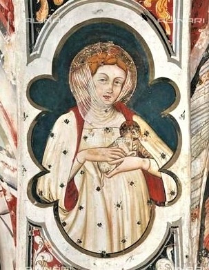 두 번째 아치 위에는 머리카락과 얼굴이 들여다 보이는 베일과 편안해 보이는 옷의 주름 그리고 아녜스의 상징인 후광이 있는 어린양을 손에 들고 아주 섬세하게 그려진 성녀 아녜스의 모습을 볼 수 있습니다.