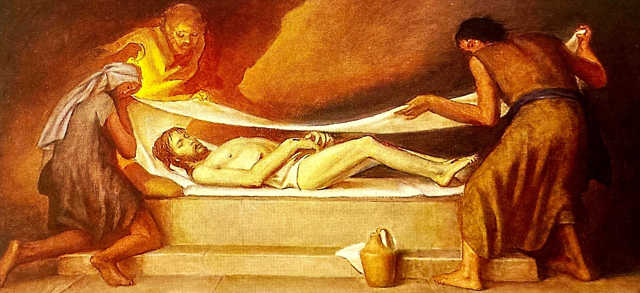 6. 신도네의 사람이 십자가에서 내려져 시신을 닦거나 기름을 바르는 것 없이 바로 신도네로 감싸 장례를 치렀습니다. 왜냐하면 다음날이 유대인들에게는 노동이 금지된 안식일이었기 때문입니다. 아마도 죄인이 이런 경우를 맞닥뜨리는 것은 대략 20분의 1일 것입니다.