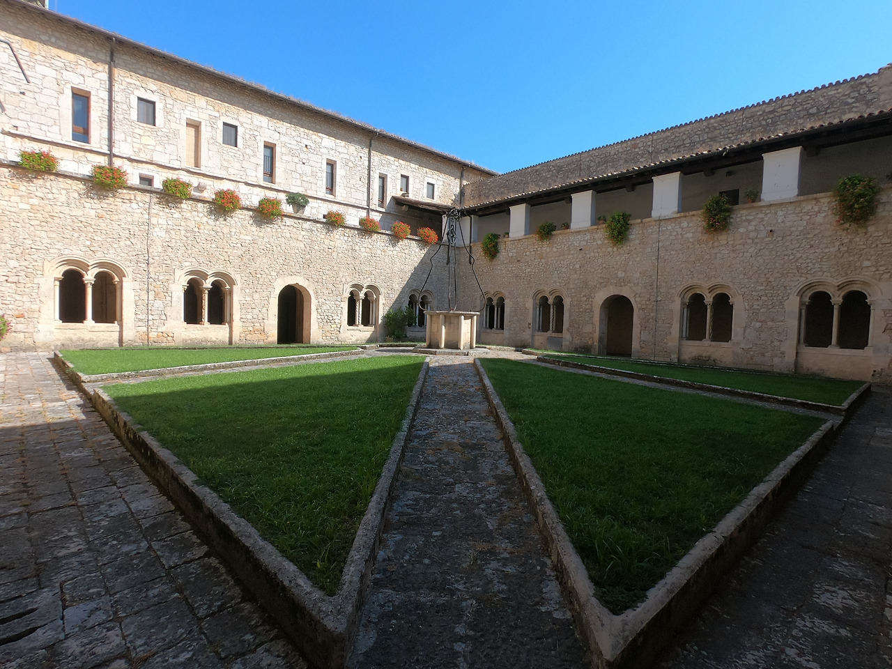 중앙 정원과 맞붙어 만들어진 사각 회랑은 수도원 각 건물과 연결된 장소의 중심이자 기준점이 되는 곳입니다. 이 사각 회랑을 따라 걷다 보면 성당, 기도서 보관소, 규칙서의 방, 수도승이 일하는 방들, 벽난로의 방, 식당, 창고 그리고 수도자의 침실 등 수도원의 각 장소를 다 만날 수 있습니다. 잠그다는 뜻을 가지고 있는 라틴말 클라우스트룸 (claustrum)에서 유래한 이탈리아 말 키오스트로 (chiostro)는 말 그대로 회랑 바깥쪽에 각 장소의 방을 두어 세상과의 연결을 막아주는 동시에 회랑 안쪽으로는 창문과 통로 그리고 우물을 두어 수도자의 삶의 중심이 어느 자리에 두어야 하는지를 건축학적으로 잘 보여주는 곳입니다.