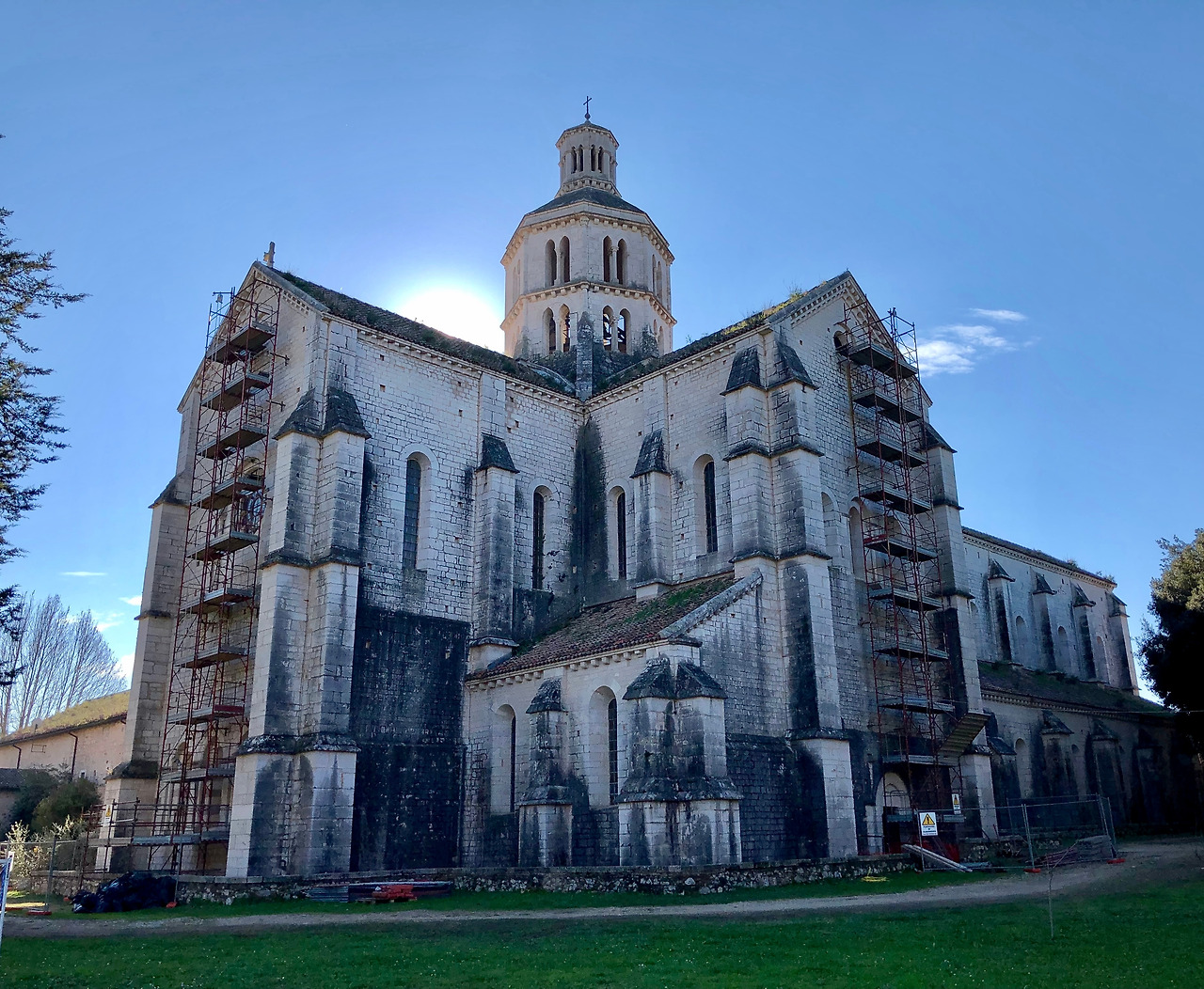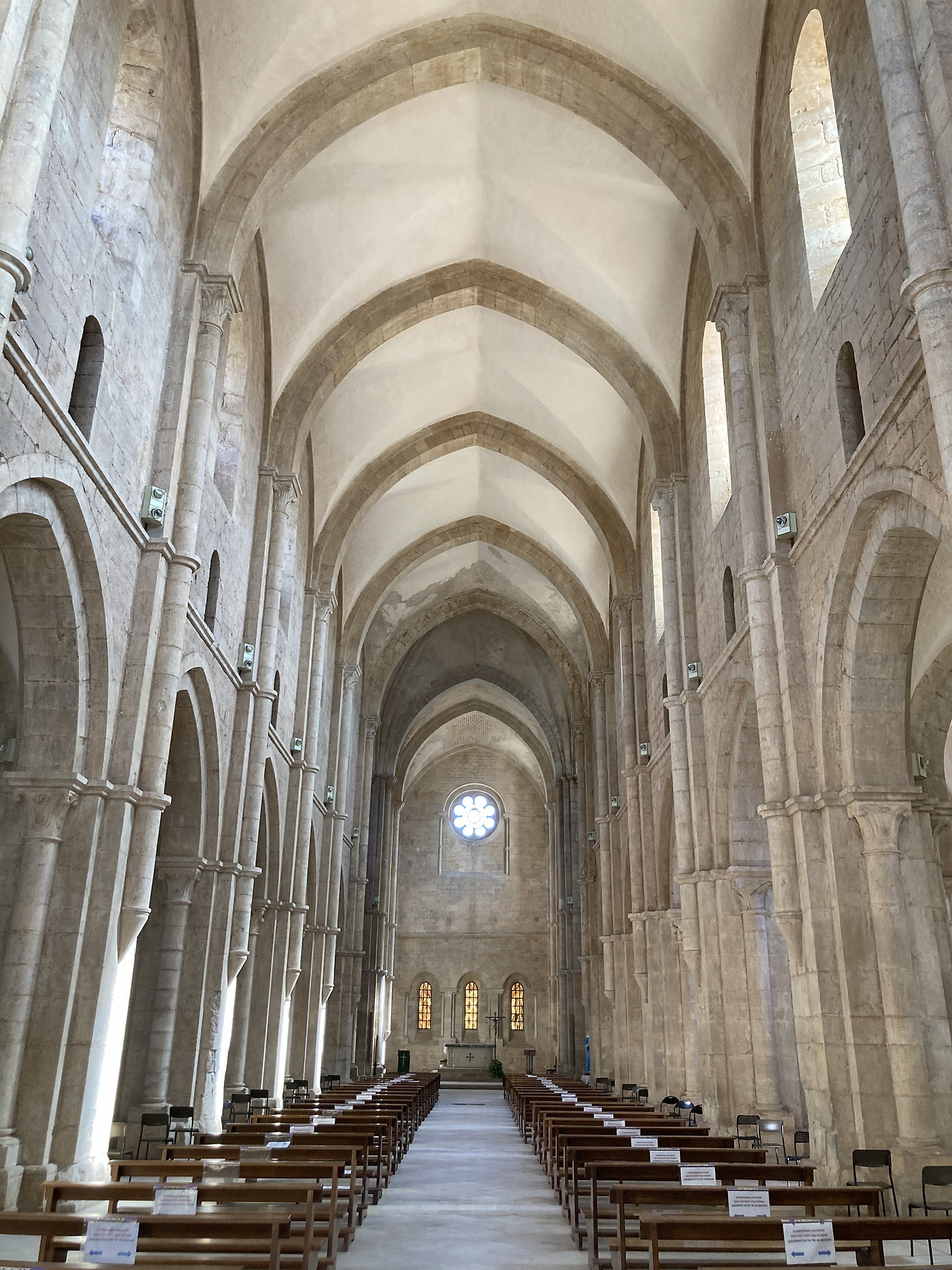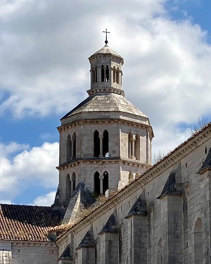 이처럼 팔각형은 성전 기사단 좋아하는 8을 상징하는 도형이었고 성당의 종탑에서도 나타나고 있습니다. 이곳의 종탑도 시토회 정신에 맞게 성당과 분리해서 만든 것이 아니라 지붕의 가로와 세로가 겹치는 부분에 붙여서 종탑을 세워 건축의 과함을 피하였고 모양은 팔각형으로 만들어 성전기사회의 정신을 담고 있습니다. 그리고 3층으로 된 이 종탑 각 면은 두 개의 구멍이 나있는 창이 있고 가장 윗부분을 작은 크기로 올려놓음으로써 고딕의 상징인 상승성을 이 단순한 성당에서 완벽하게 표현하고 있습니다. 그런데 이 종탑의 모양은 로마네스크나 고딕 시절에 볼 수 있는 건축물은 아닌 것 같습니다. 오히려 바로크에 어울린다는 생각이 들지 않으신가요? 이유는 번개에 의해 종탑이 무너졌고 16세기에 다시 만든 종탑이기 때문입니다.