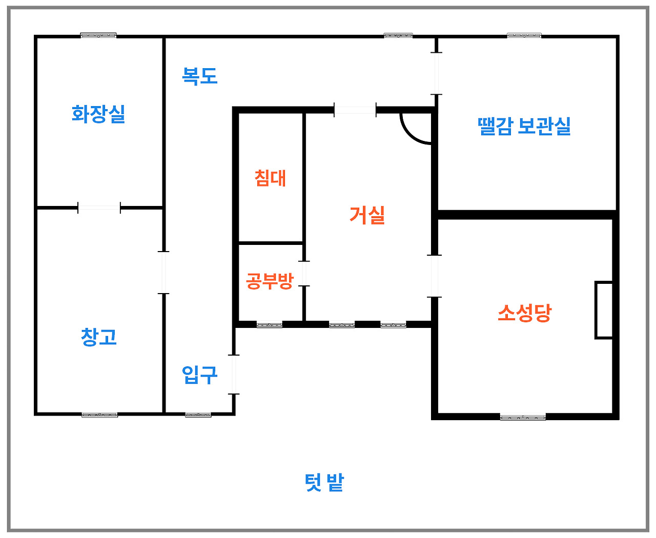 문을 열고 들어가면 기역 자 모양의 복도가나오는데, 이곳 또한 날씨가 나빠 수도자가 텃밭에 나갈 수 없을 경우 걸으면서 몸을 움직일 수 있는 공간이었고 간단하게 손작업도 할 수 있었습니다.