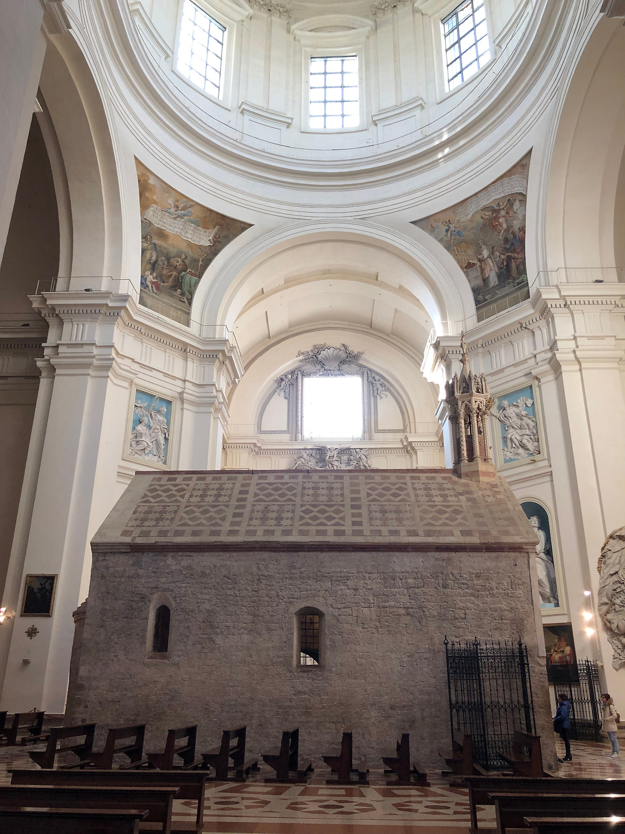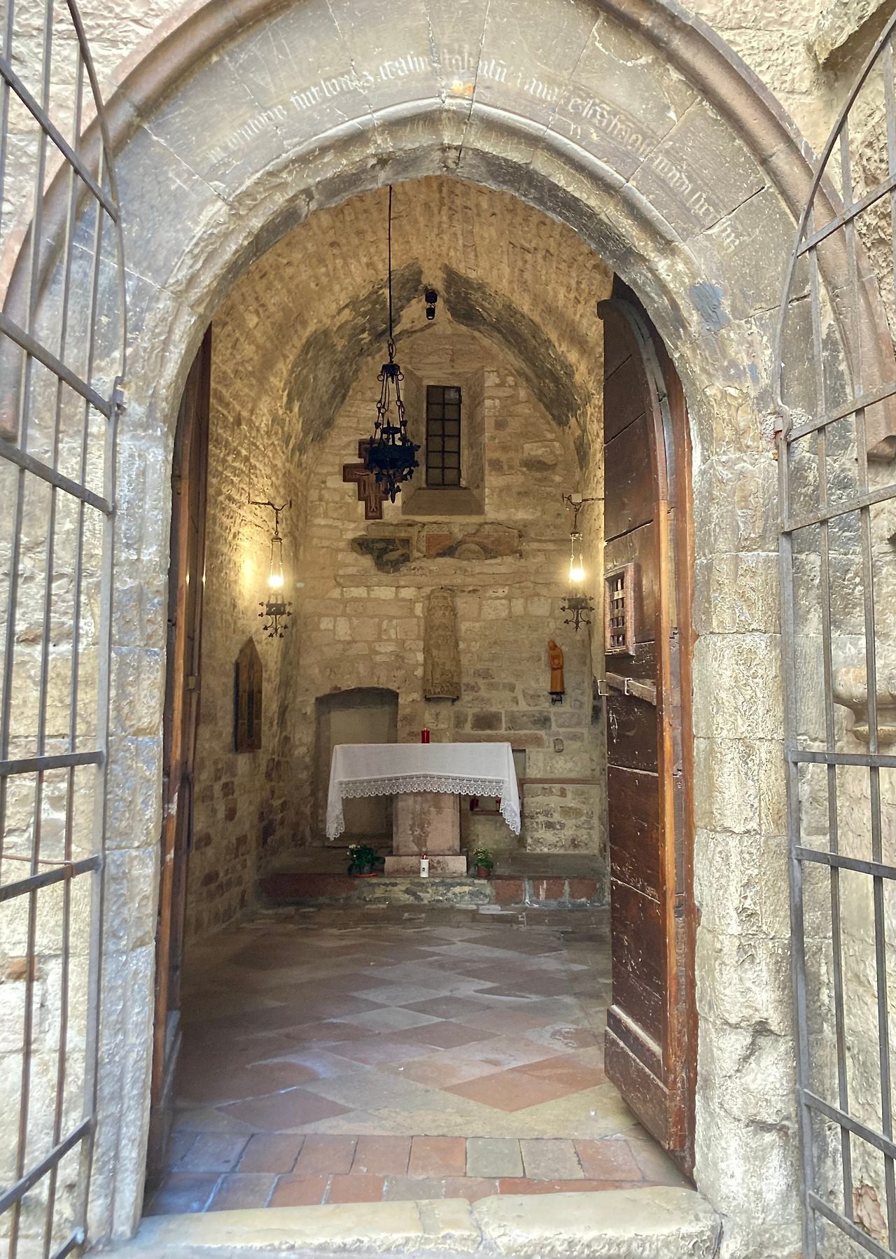사진 설명 : 프란치스코가 태어난 소성당. 원래 이 소성당은 마구간이었고 프란치스코 어머니 피카 부인이 프란치스코를 낳으려 집에서 산통 중에 있을 때, 한 순례자가 들어와 뱃속에 있는 아이를 낳으려면 집 밖의 마구간으로 가야 한다고 해서 장소를 옮겨 이곳에서 출산하였다고 한다. 하지만 이 출산 이야기는 성인이 선종하시고 난 후 300년이나 지나서야 문서 상으로 처음 등장하였다. 이것은 탄생 장소의 진위를 밝히려 했다기보다는 프란치스코의 삶은 첫 순간부터 예수님을 닮으려 했음을 보여주는 것이다.