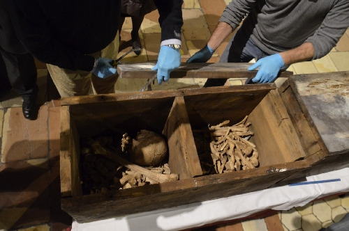 사진 설명 : 성광 안에 있는 것은 프란치스코 성인이 오상을 받으신 후 손바닥을 감쌌던 천으로 탁한 핏자국이 중앙에 있다. 아래 십자 모양으로 묶은 돌은 성인이 선종하였을 때 머리에 놓았던 돌베개이고 그 옆에 있는 것은 성인이 사용한 방석이다.