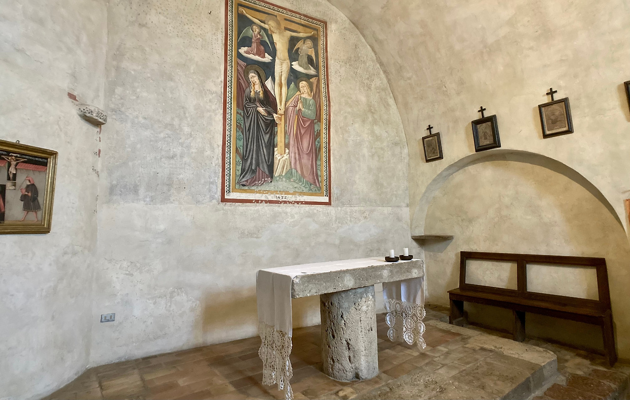 제대 왼쪽에는 벽을 파서 만든 감실이 있고 성녀는 성체를 모신 이 감실 앞에서 선종하실 때까지 자매들과 함께 기도하셨습니다. 이 사실을 증명하듯 감실 왼쪽 아래에는 성녀가 기도하는 자매들과 함께 감실 앞에서 무릎 꿇고 기도하는 모습으로 표현된 프레스코화가 그려져 있습니다. 감실 안에는 아기의 모습으로 그려진 예수님이 있습니다.