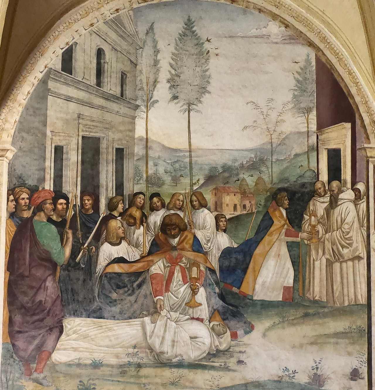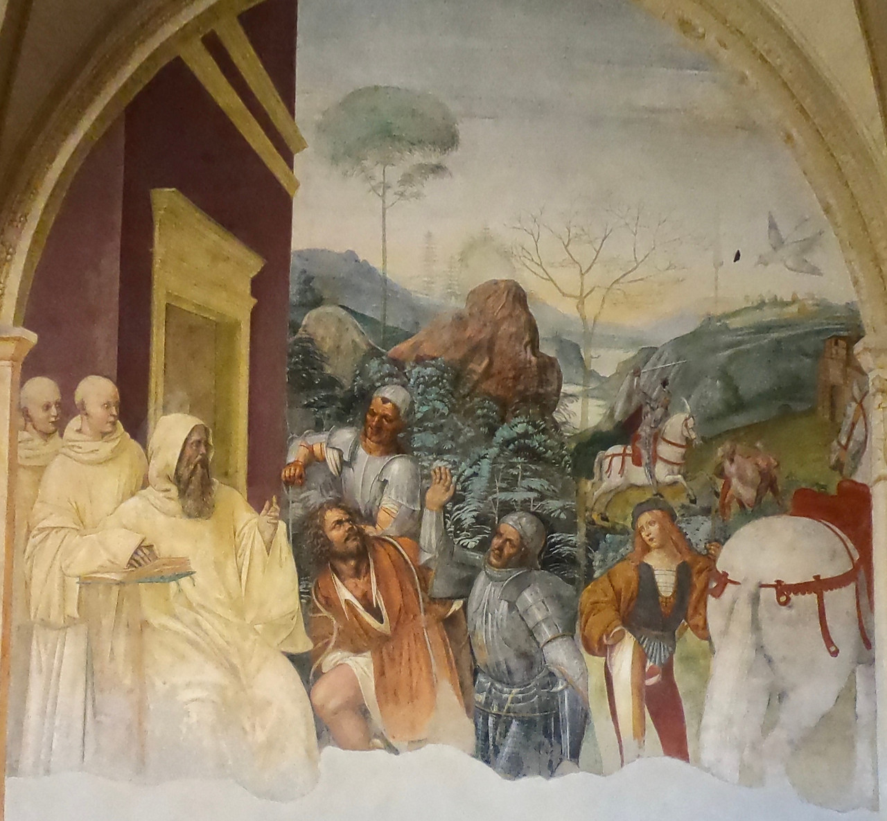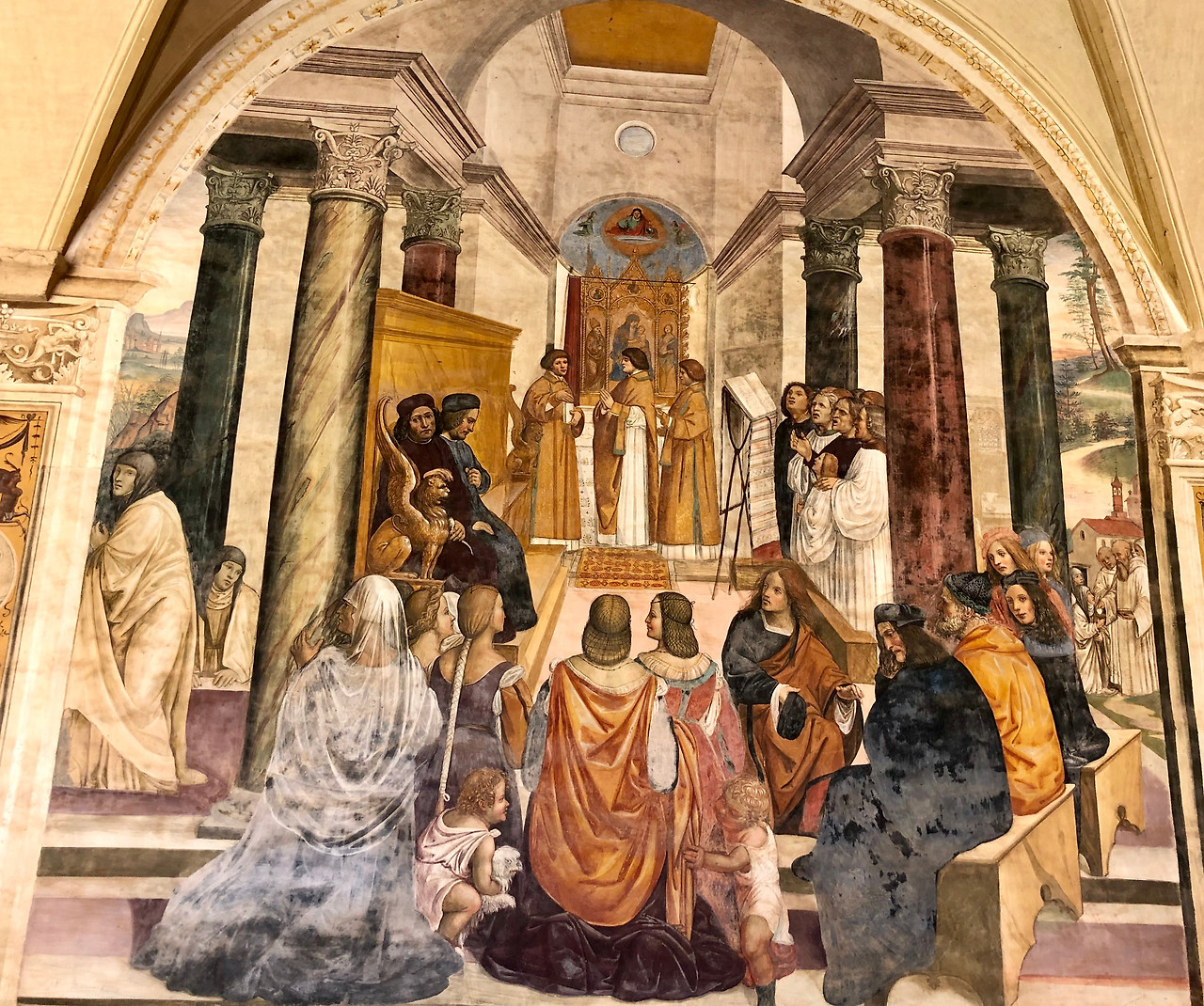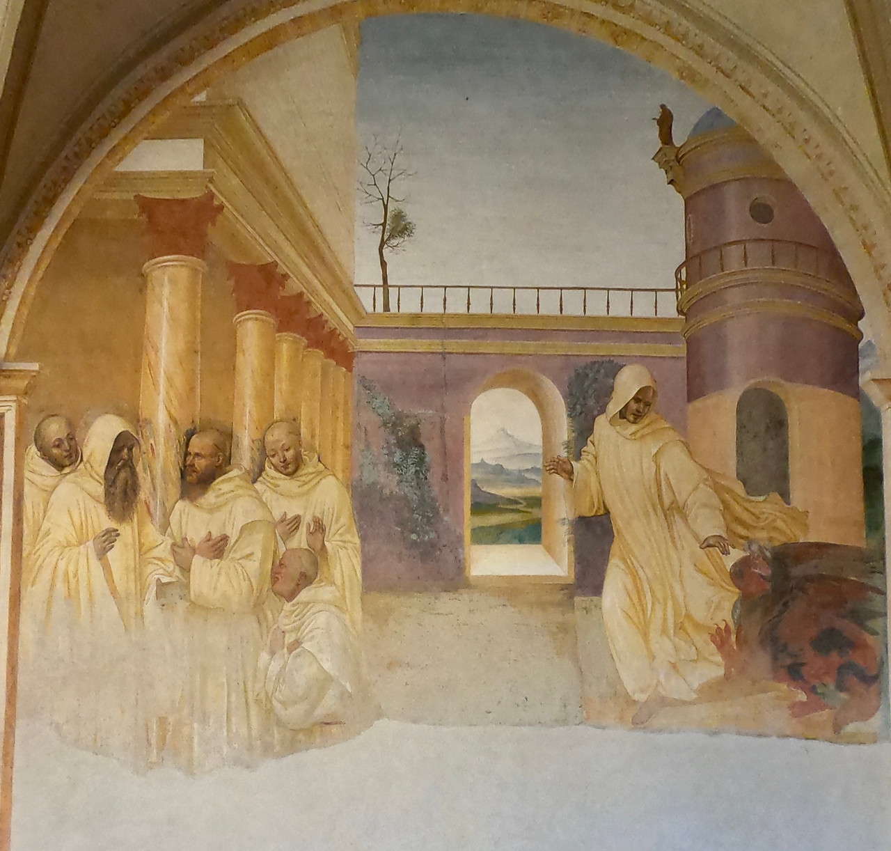 프란치스코 대성당에 프란치스코 성인의 이야기를 프레스코화로 그려 놓은 것처럼 몬테 올리베타노 대수도원은 다른 베네딕도회 수도원과는 다르게 베네딕도 성인의 삶을 그림으로 알아보기 쉽게 설명하고 있는 유일한 곳입니다. 그래서인지 수도원 대정원에서 성인의 이야기가 담겨있는 그림들을 하나하나 따라가면서 1500년 전 베네딕도의 규칙으로 시작된 중세 수도원이 이곳에서 수도 생활의 기본이 다시 완성인 된 느낌을 받게 되었습니다.