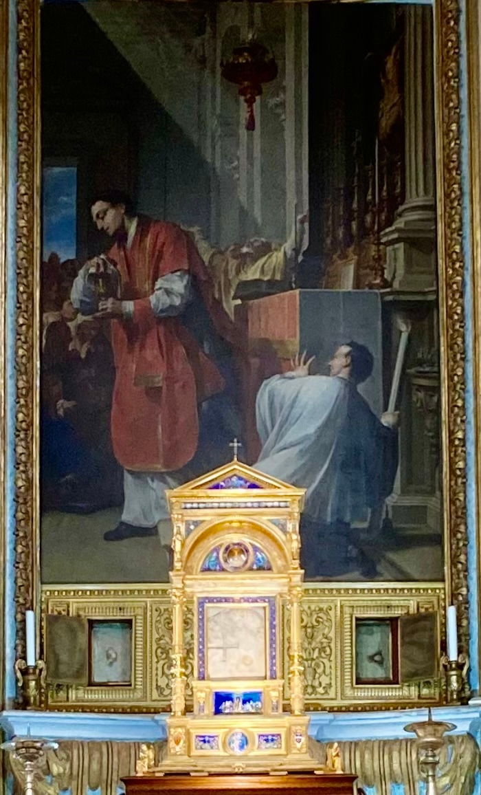 중앙 제대 왼편으로 크리스티나 성녀의 제대가 있고 제대 위에는 순교의 상징을 나타내는 화살을 들고 있는 성녀의 조각과 함께 유해가 모셔진 은으로 만들어진 유해함을 제대 아래에서 볼 수 있습니다.