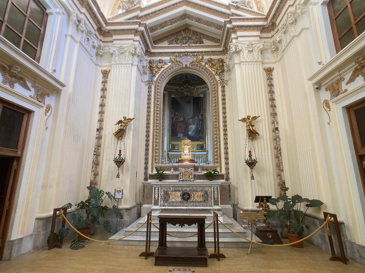 앞에서 언급한 것처럼 기적의 소성당은 가장 늦게 만들어진 바로크 양식의 성당입니다. 외부와 연결되는 독립된 중앙문도 가지고 있어 소성당이라고 부르기는 적합하지 않은 것처럼 보이지만 대성당과 동굴 성당 사이를 연결해 주며 만들어져 있습니다. 1693년 동굴 성당에 있던 성혈이 묻은 네 장의 대리석 판을 따로 보존하기 위한 성당을 짓기로 결정하고 건축가 톰마소 마테이 (Tommaso Mattei, 1652-1726)가 건축하였습니다. 그리고 1704년 10월 6일 성혈이 묻은 대리석 판은 동굴 성당에서 이곳으로 옮겨지게 되고 이 소성당은 1726년에 축성이 되어 1863년에 모두 완성이 되었습니다.
