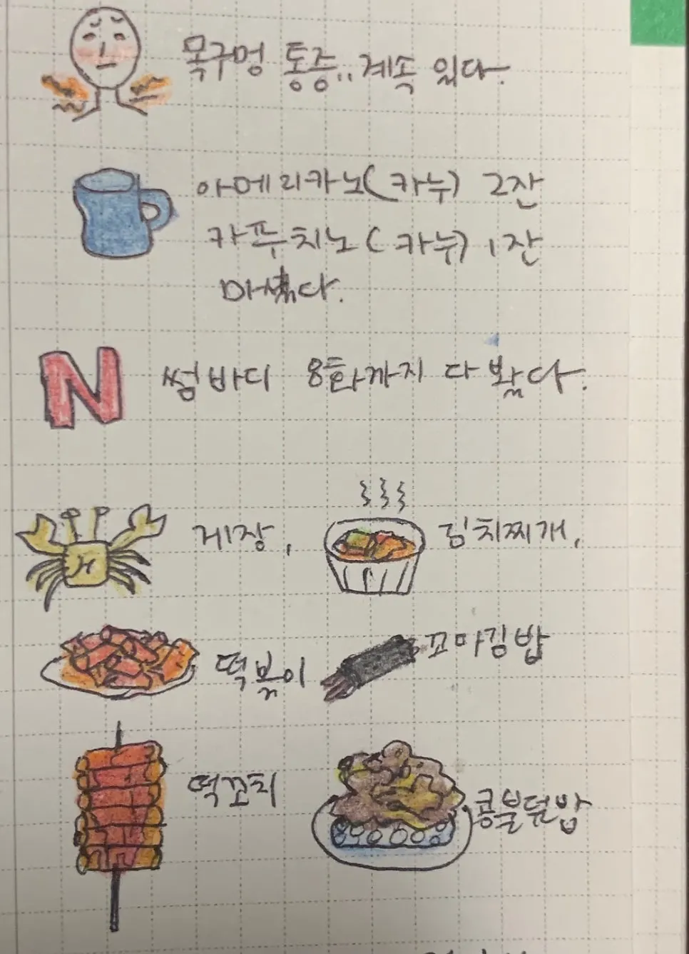 그림 그리기, 글쓰기, 노래 듣기, 영상 시청 등이다.