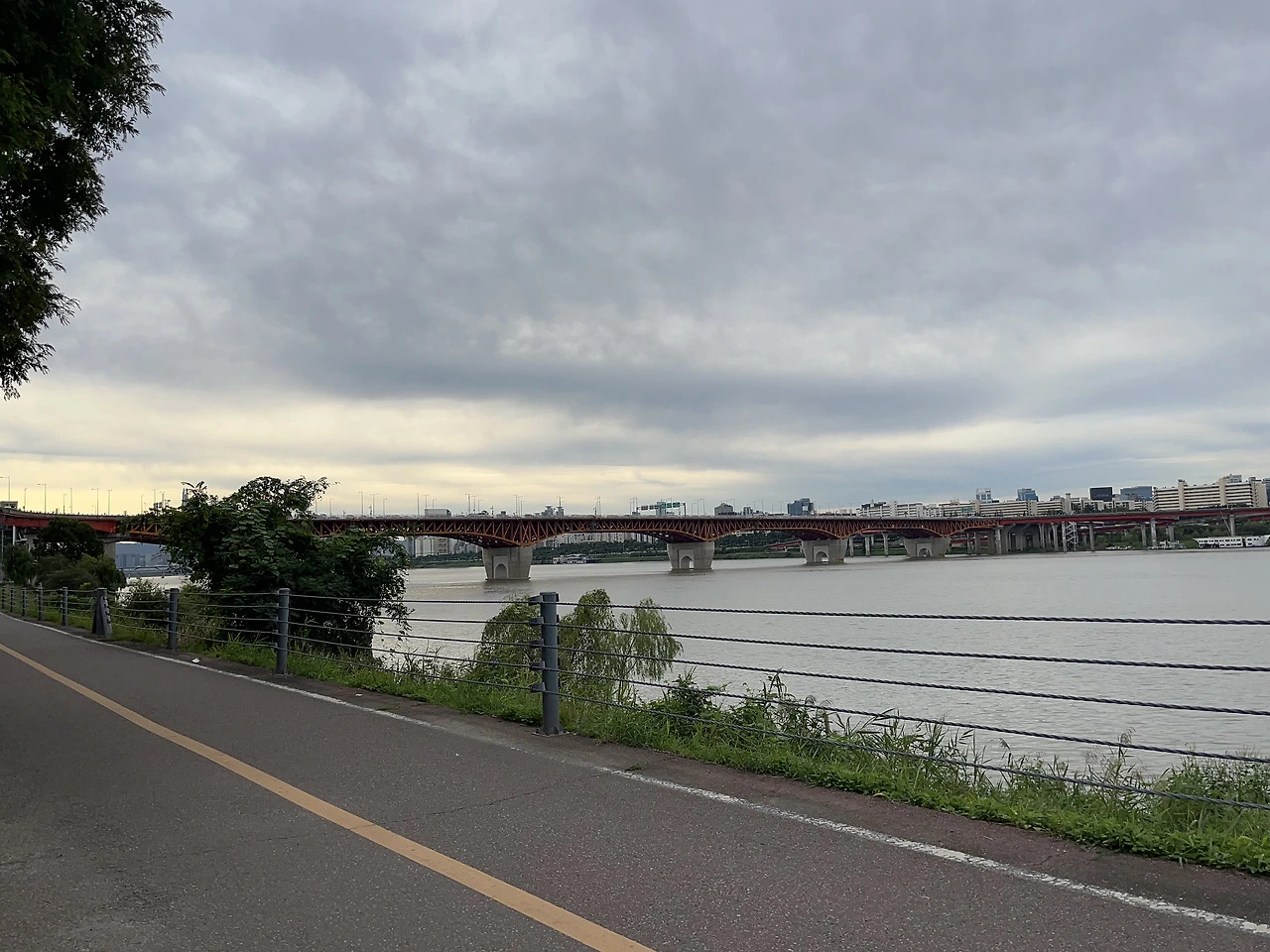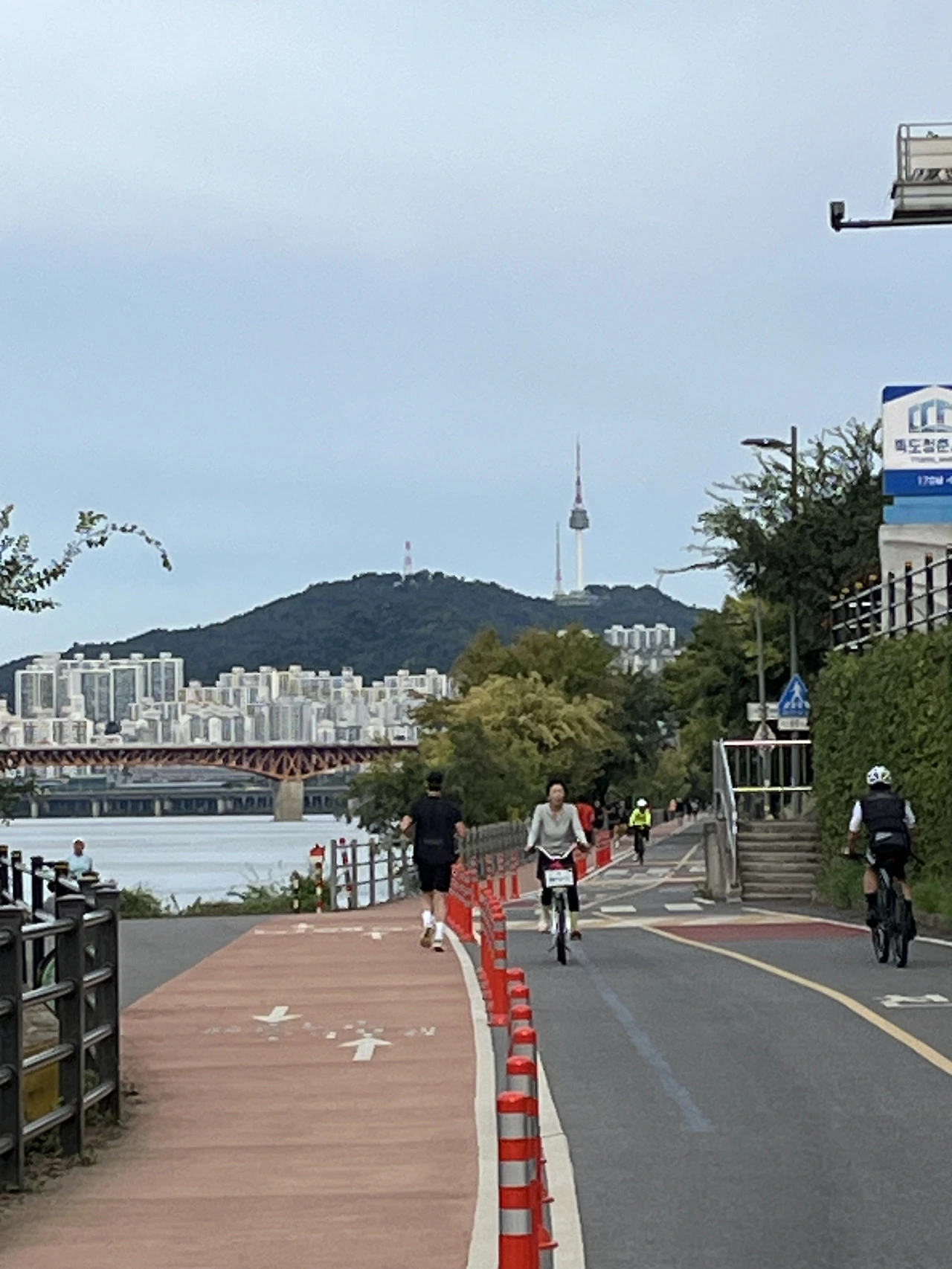 강바람을 맞으며 자전거를 타고 시원하게 달렸다.